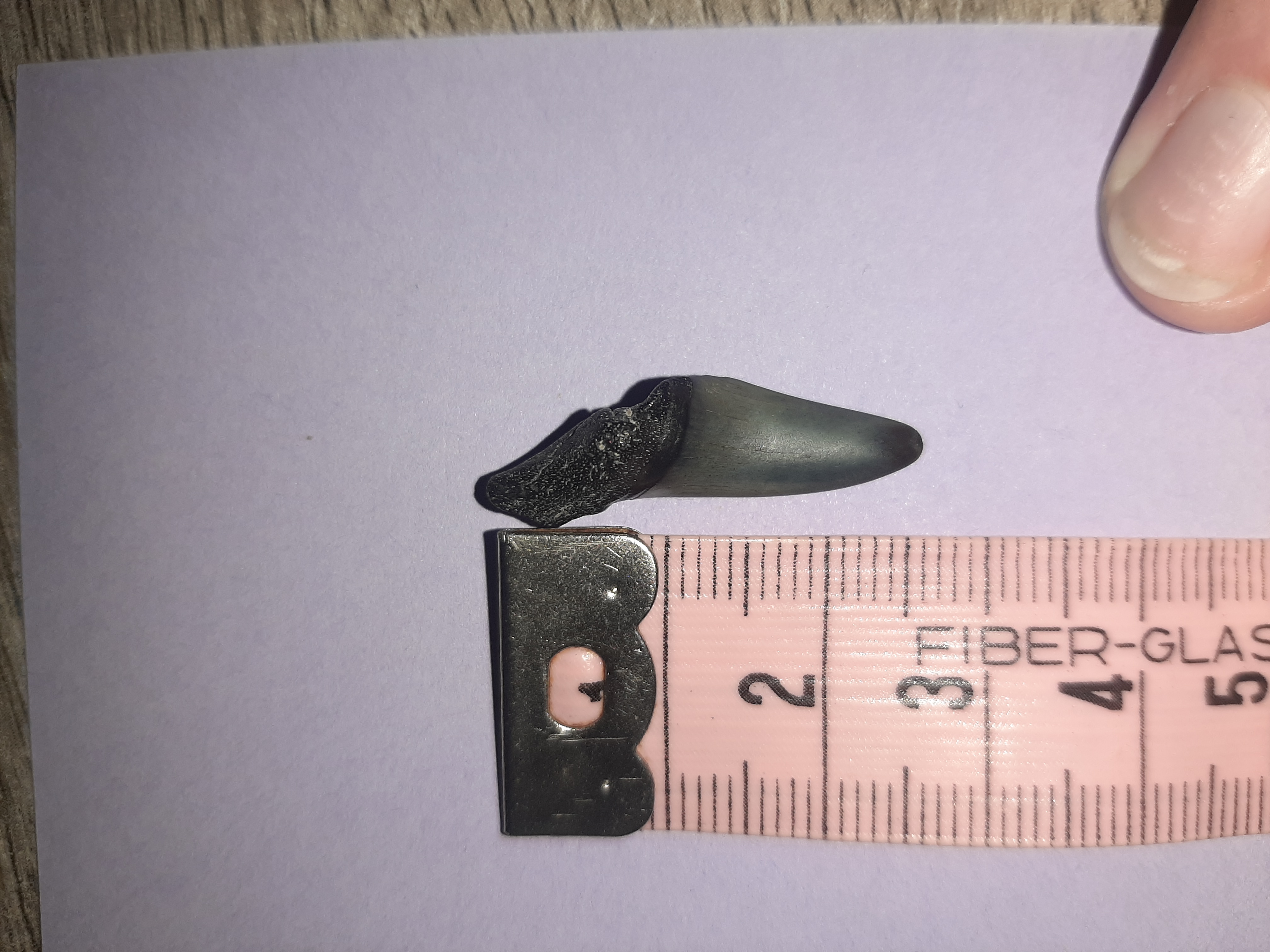 Hoihoi, ik ben geheel nieuw hier en ook mijn vondsten zijn mijn allereerste. Graag wil ik weten wat ik nou precies gevonden heb... Ik sta open voor suggesties om zelf ook te gaan zoeken naar informatie hierover maar ik zou het fijn vinden als iemand mij daar bij kan helpen. Fotos hieronder. De grotere tand in van voor en achter gefotografeerd.
