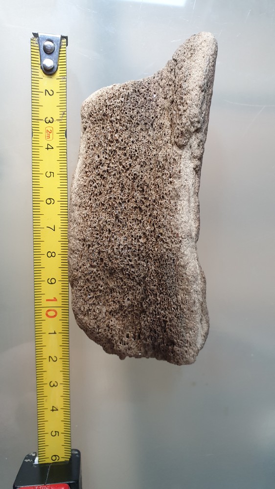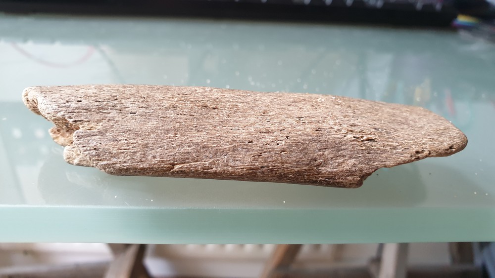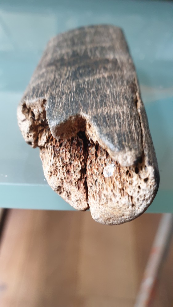 De onderstaande twee botten heb ik aangespoeld gevonden op het Zuiderstand in Den Haag. Ze zijn volgens mij niet voledige gefossiliseerd (bij een stevige vlam geven ze wat geur af), maar ze lijken mij ook een stuk zwaarder dan vers materiaal. Is er misschien iets te zeggen over de herkomst of mogelijke ouderdom? Meestal zijn de botfragmenten die ik op het strand vind zo klein dat het mij vrij zinloos lijkt, maar bij deze grotere fragmenten is er misschien meer mogelijk.