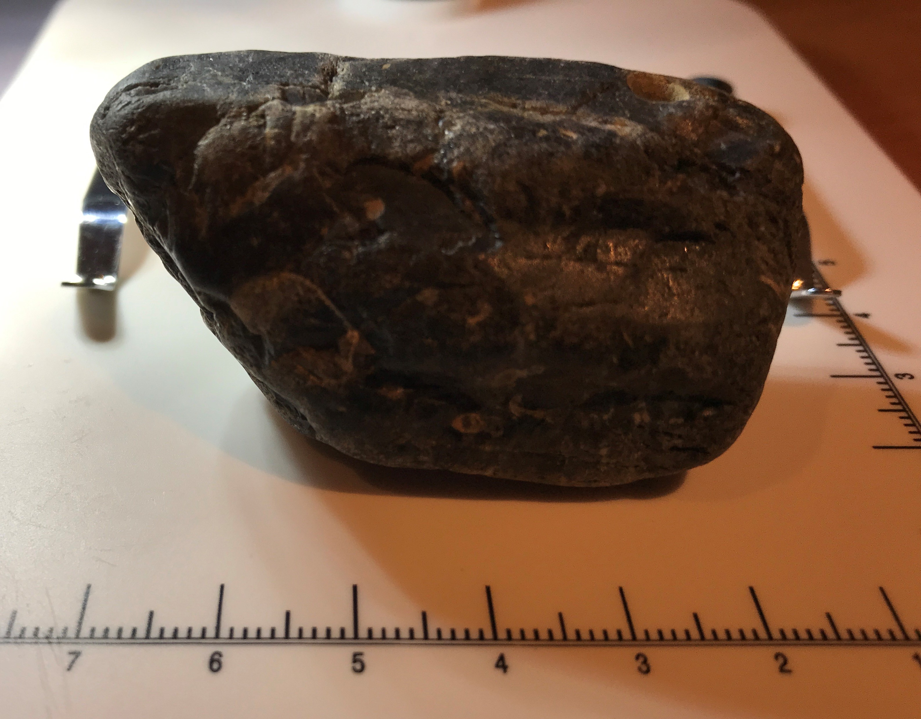 Kan iemand aangeven wat dit ronde gaatje veroorzaak heeft? Is dit een fossiel?