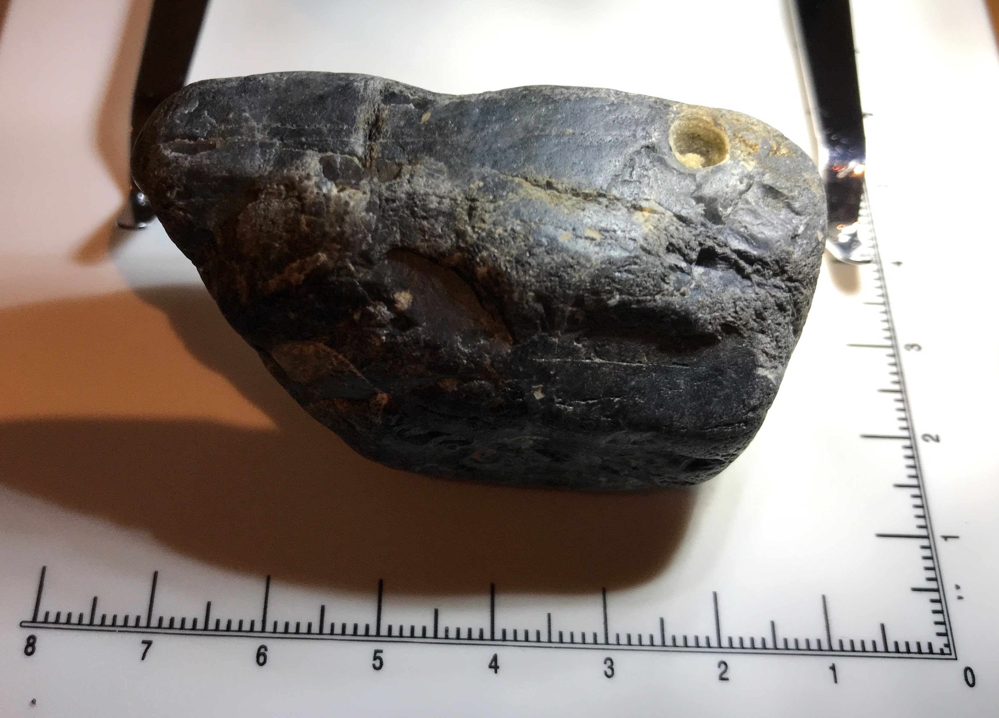Kan iemand aangeven wat dit ronde gaatje veroorzaak heeft? Is dit een fossiel?