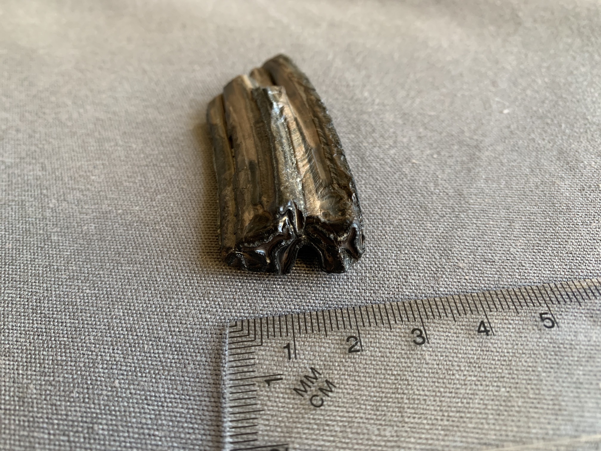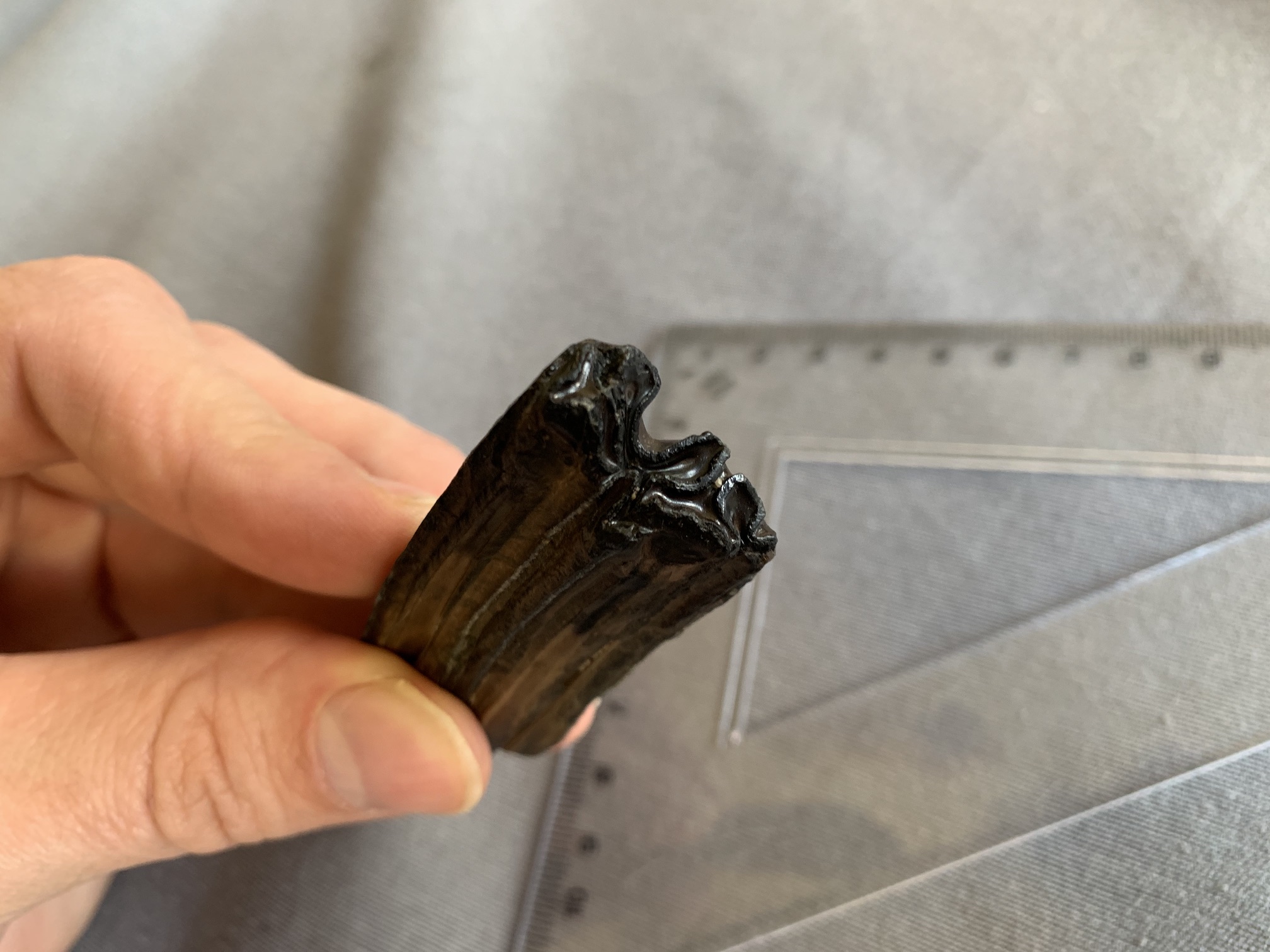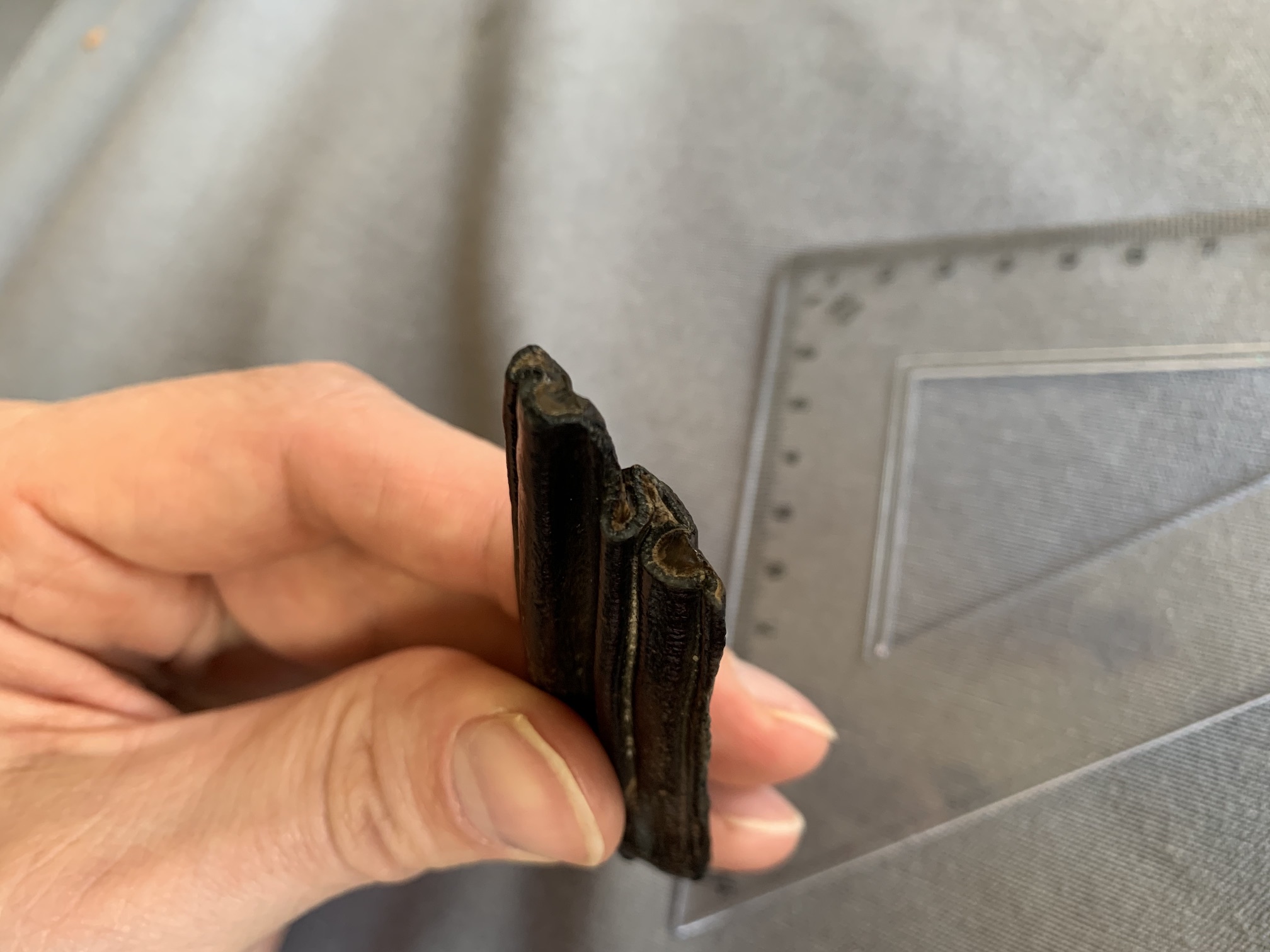Ik was met mijn vader op het strand van Kijkduin. Ik ging stukjes hout oprapen en dacht dat het een gefossieleerd stuk hout was, maar toen we thuis kwamen zagen we dat het geen hout was.Mijn moeder denkt dat het een kies van een dier is, maar welk dier? En hoe oud? Weten jullie het misschien?