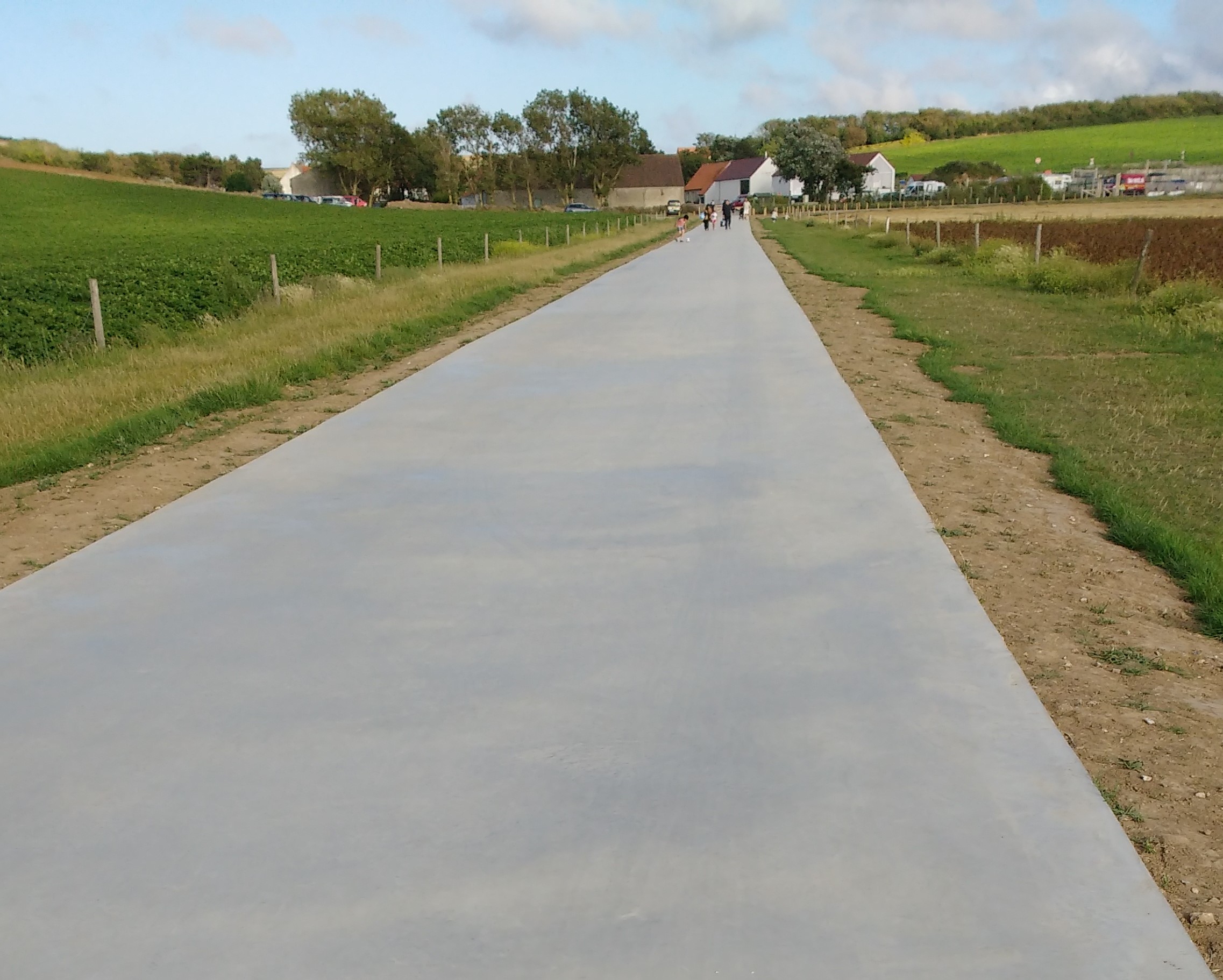 Twee nieuwe huizen en twee parkings aan weerszijden van de weg meteen buiten het dorp nog voor het rioolbezinkbasin.