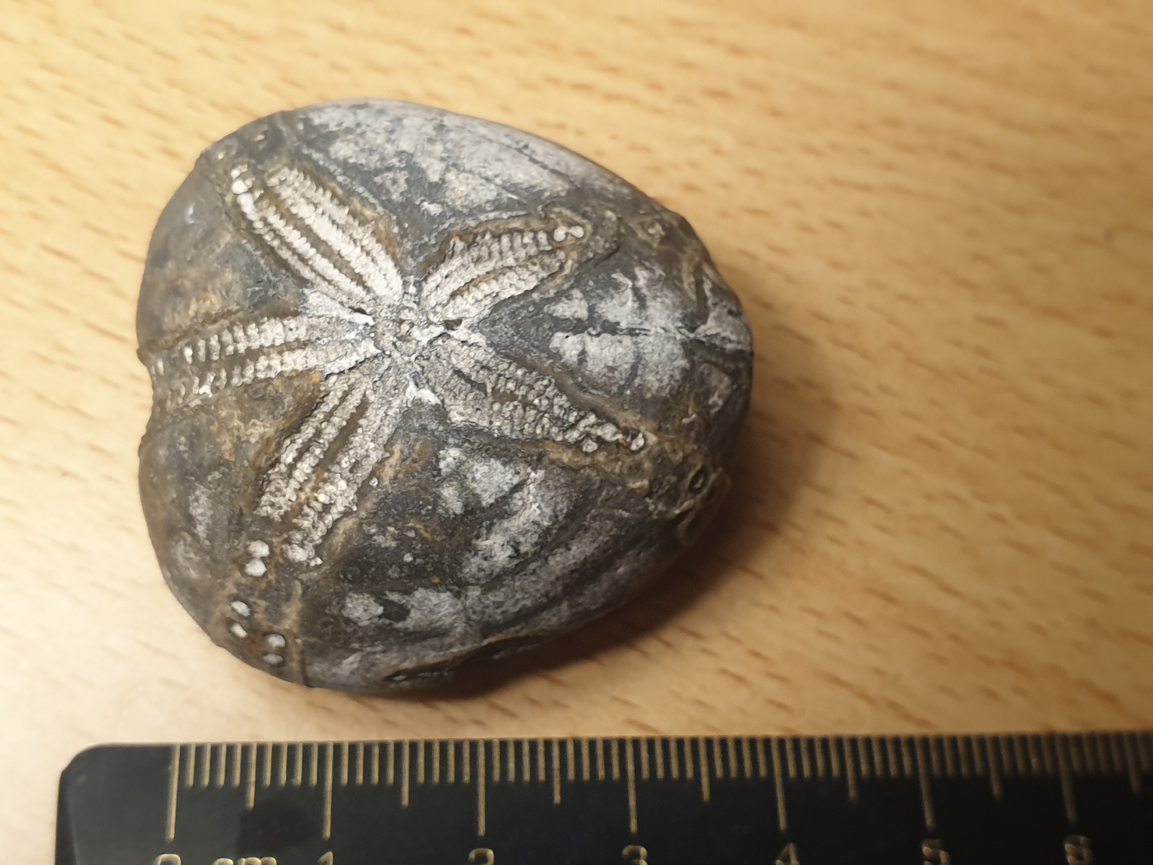 Af en toe raap je ook wel eens een fossiel op wat je daar eigenlijk niet verwacht. Er zijn wel meer zee egels gevonden op de Walcherse stranden, maar ze komen niet vaak voor. Iemand enig idee welke dit is?