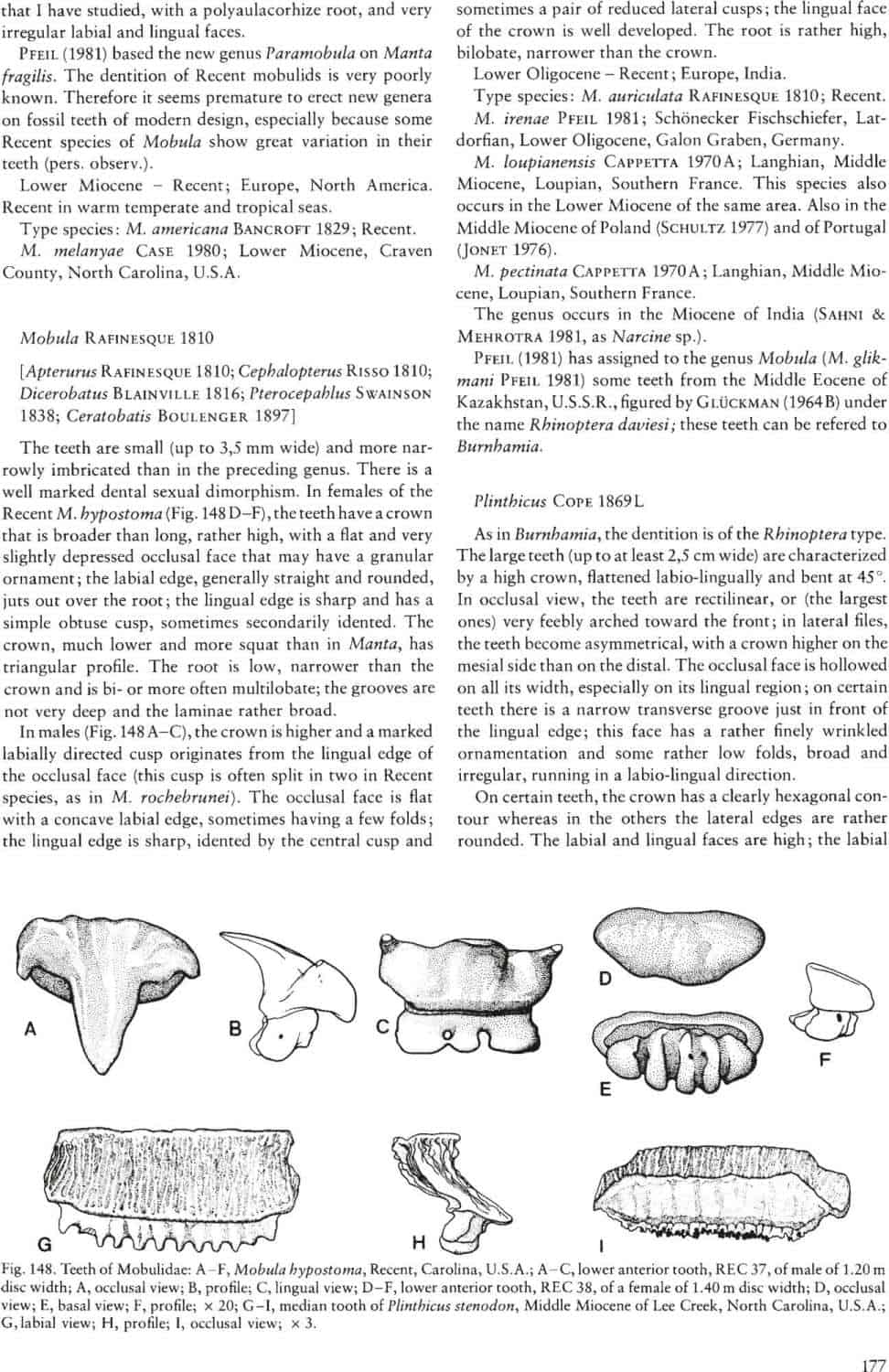 Het lijkt hem eerder juveniele Myliobatis. De kroon is nauwelijks afgesleten, waardoor deze hoger lijkt en een s-vorm krijgt. Die s-vorm wordt minder of verdwijnt als de tandkroon door foerageren afslijt en lager wordt.