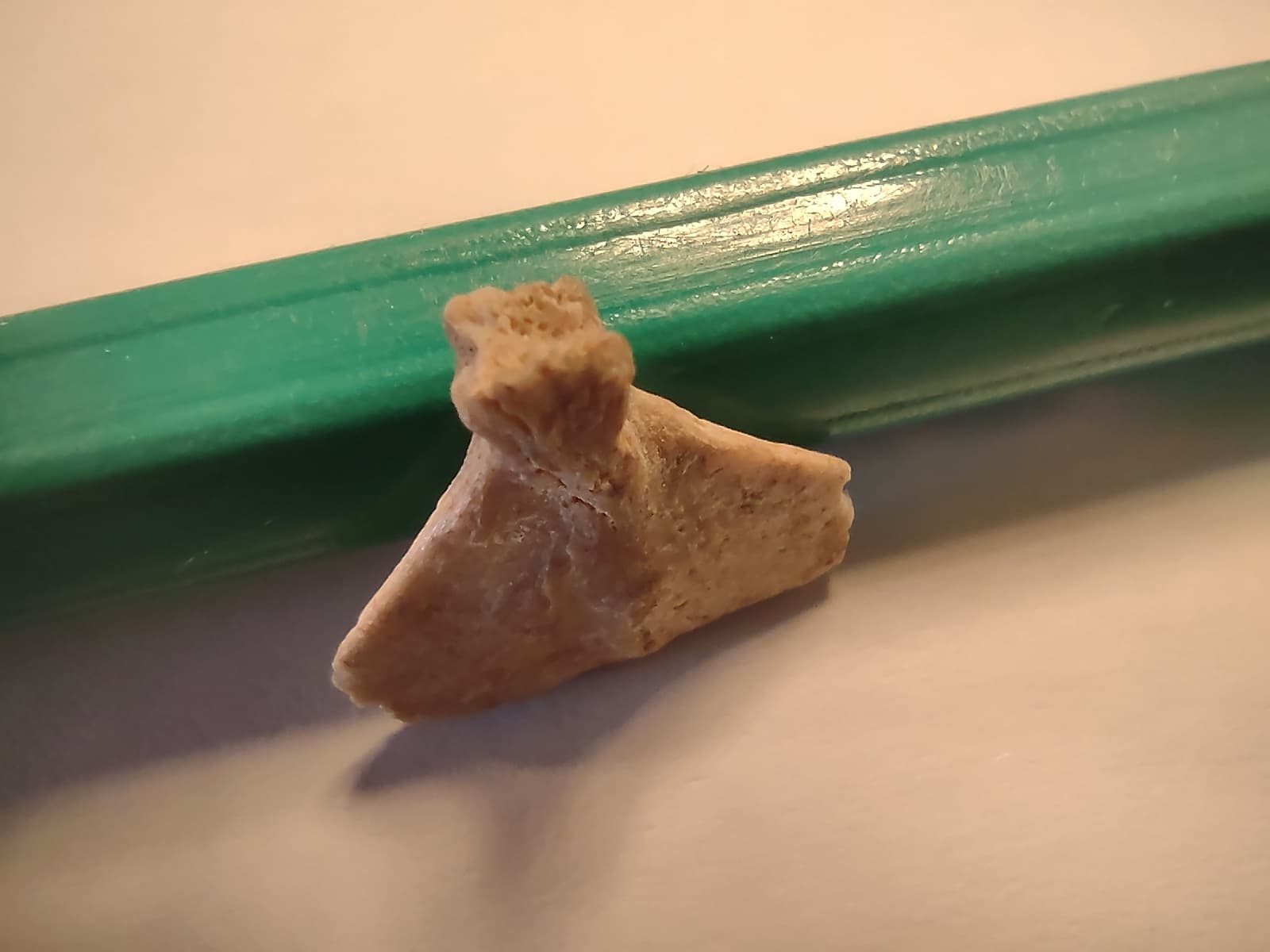 Momenteel ben ik bezig met het determineren van een deel van mijn oude verzameling. Dit fossiel komt uit khouribga en is ongeveer 10 mm. Eerst wist ik niet goed wat ik me erbij moest voorstellen. Na een tijdje zoeken kwam ik uit op het hypurale gewricht. Dit is het gewricht tussen de staartvin en de laatste van de wervels. De vorm van de hypural is vaak waaiervormig, vandaar mijn determinatie. Ik hoop dat de foto's duidelijk genoeg zijn.