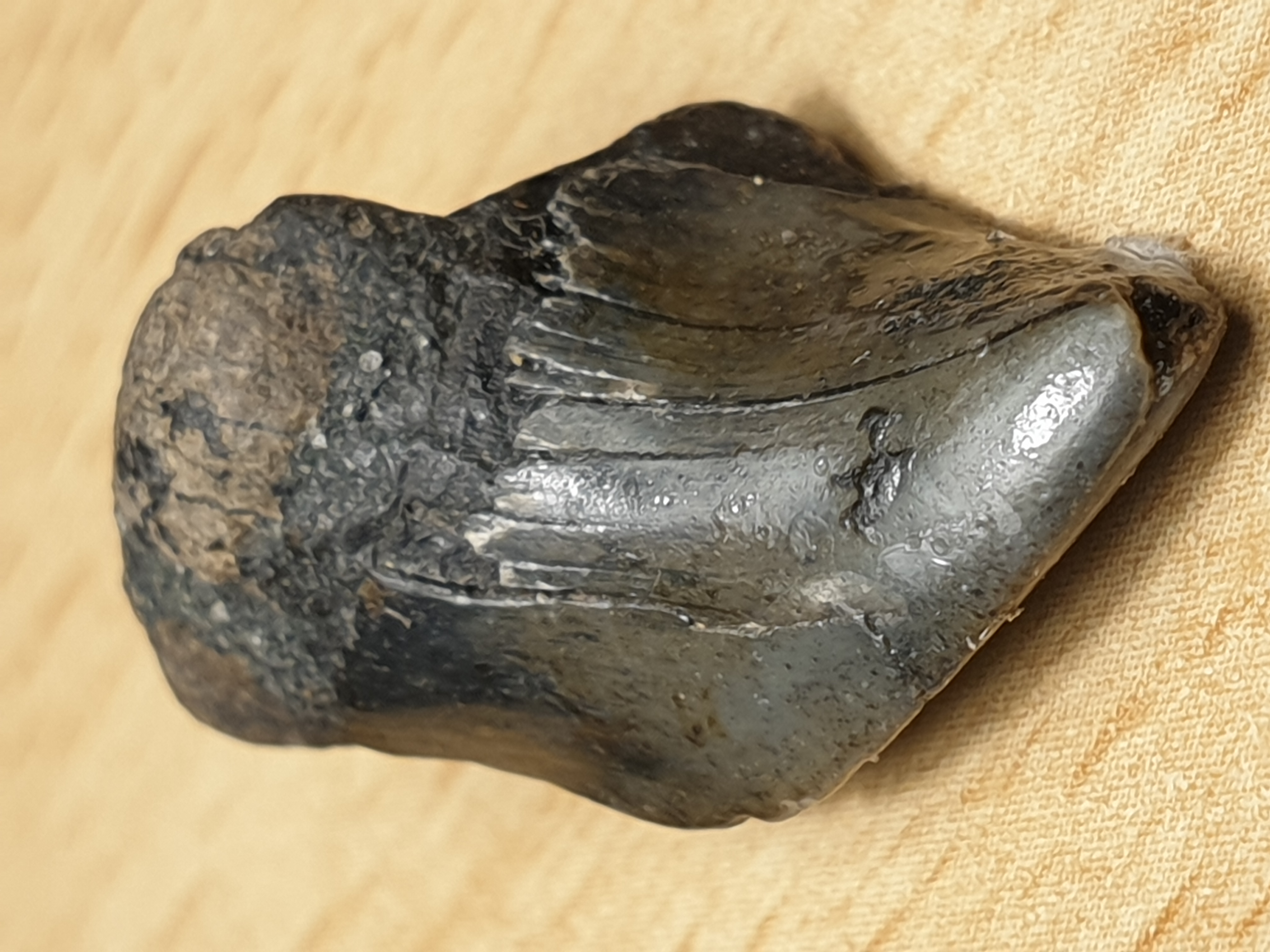 Nog een tand uit Breskens, gevonden in 1990. Volgens mij is het een Paratodus Benedeni.