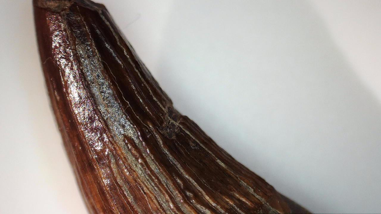 Het blijft echter pielen - en al helemaal met de beperkte beeldhoek (kleine reptielentanden, zoals van plesiosauriërs of thalattosauriërs, passen bijvoorbeeld al niet echt in beeld) en erg gerichte focus (zelf met een klein tandje kan maar een klein deel scherpgesteld worden). Misschien dat ik er de verkeerde verwachtingen van had en eigenlijk beter met een kleine lichttent en goede macrolens af ben, maar ik vond het gemak ik gebruik en wat je uiteindelijk op de resulterende foto's weet te leggen wat tegenvallen, ook al valt de kwaliteit van de foto's zelf me alleszins mee. Wel is ook belichting een probleem, omdat wanneer je met de lens te dicht op je object zit deze te veel kan reflecteren (in welk geval je de lichtsterkte overigens wel kunt terugschakelen), terwijl als de afstand tot je object daarentegen te groot is, er weer niet voldoende licht is of je juist lichtvlekken van de afzonderlijke lichtjes in je foto ziet. Dat gezegd hebbende, hier wat foto's van pliosaurustanden: