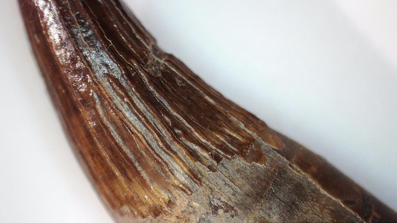 Het blijft echter pielen - en al helemaal met de beperkte beeldhoek (kleine reptielentanden, zoals van plesiosauriërs of thalattosauriërs, passen bijvoorbeeld al niet echt in beeld) en erg gerichte focus (zelf met een klein tandje kan maar een klein deel scherpgesteld worden). Misschien dat ik er de verkeerde verwachtingen van had en eigenlijk beter met een kleine lichttent en goede macrolens af ben, maar ik vond het gemak ik gebruik en wat je uiteindelijk op de resulterende foto's weet te leggen wat tegenvallen, ook al valt de kwaliteit van de foto's zelf me alleszins mee. Wel is ook belichting een probleem, omdat wanneer je met de lens te dicht op je object zit deze te veel kan reflecteren (in welk geval je de lichtsterkte overigens wel kunt terugschakelen), terwijl als de afstand tot je object daarentegen te groot is, er weer niet voldoende licht is of je juist lichtvlekken van de afzonderlijke lichtjes in je foto ziet. Dat gezegd hebbende, hier wat foto's van pliosaurustanden: