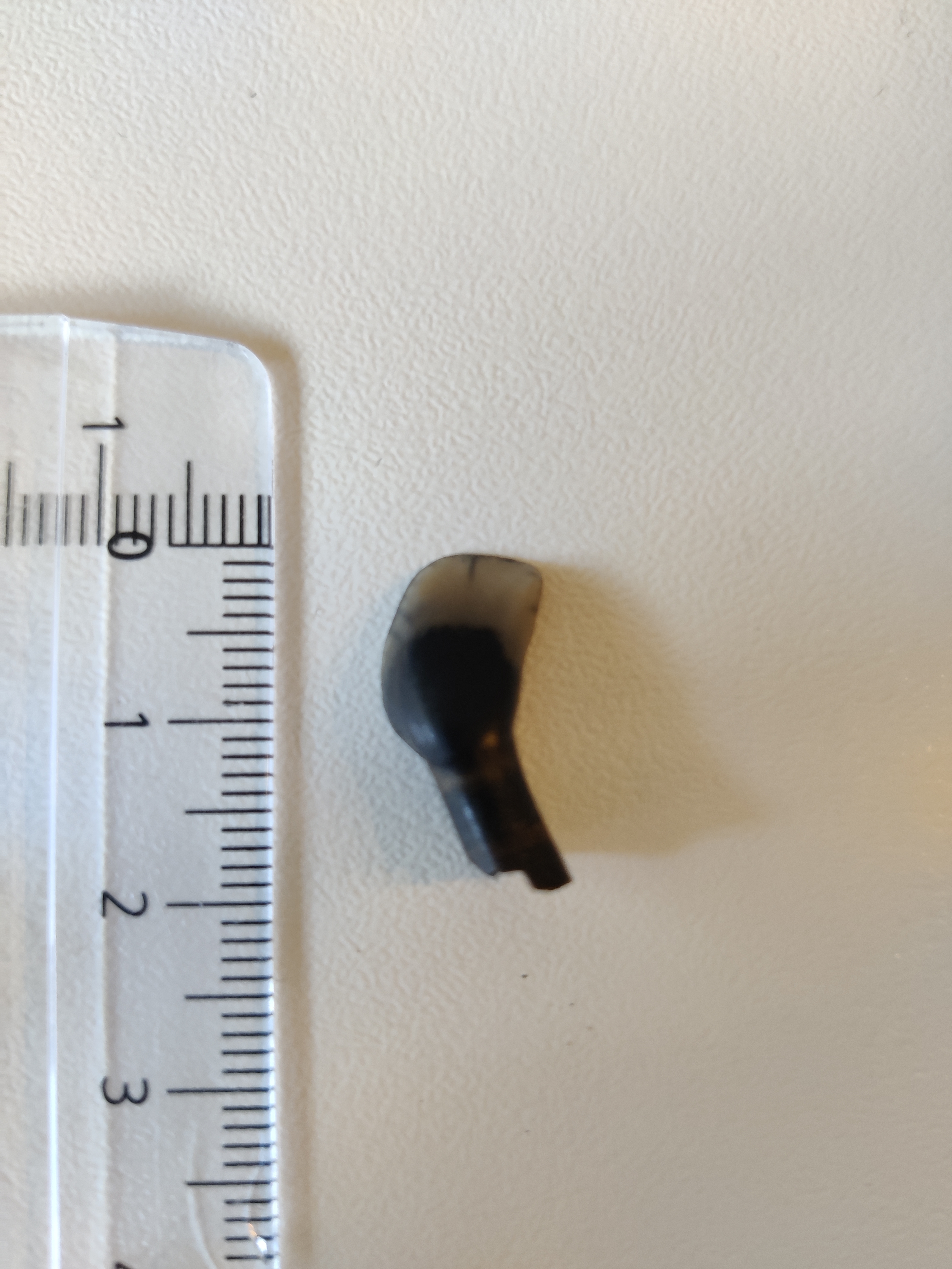 Zou dit een snijtand van een varken of ander dier kunnen zijn? Waarschijnlijk recent slachtafval.