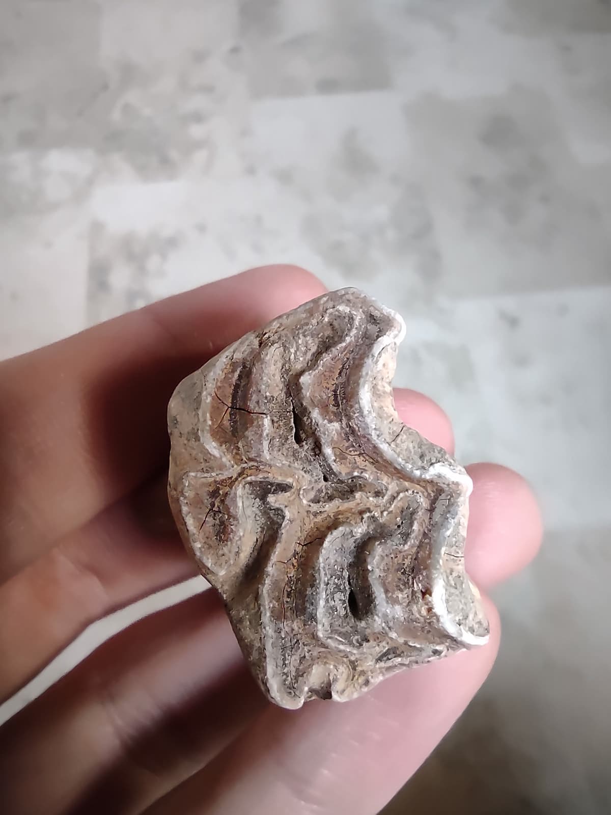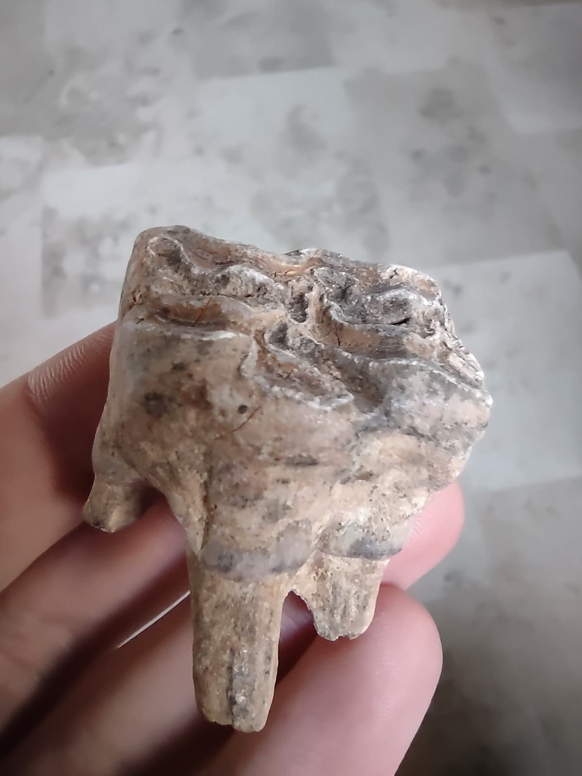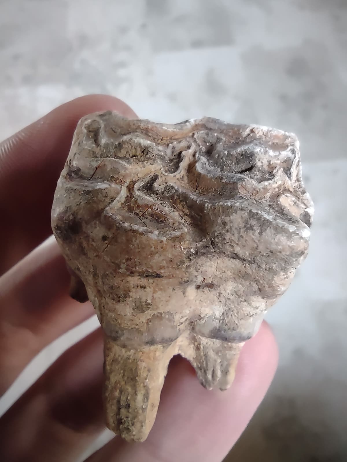 Deze tand (kies) werd gevonden in Lathum. Kan iemand mij verder helpen of het hier om een een paard- of runderkies gaat. Bijkomend zou ik willen vragen hoe men het verschil tussen beide tanden kan herkennen.