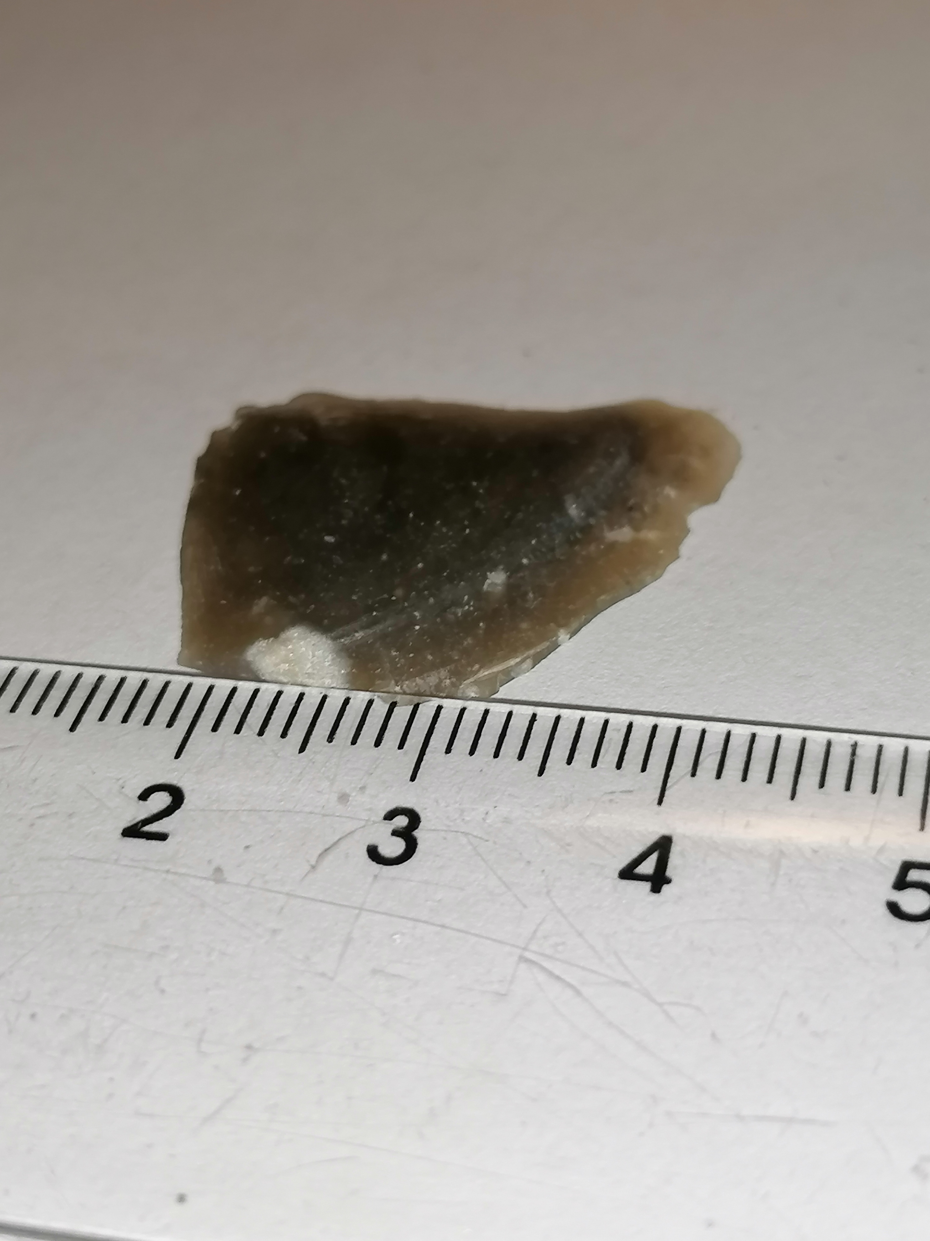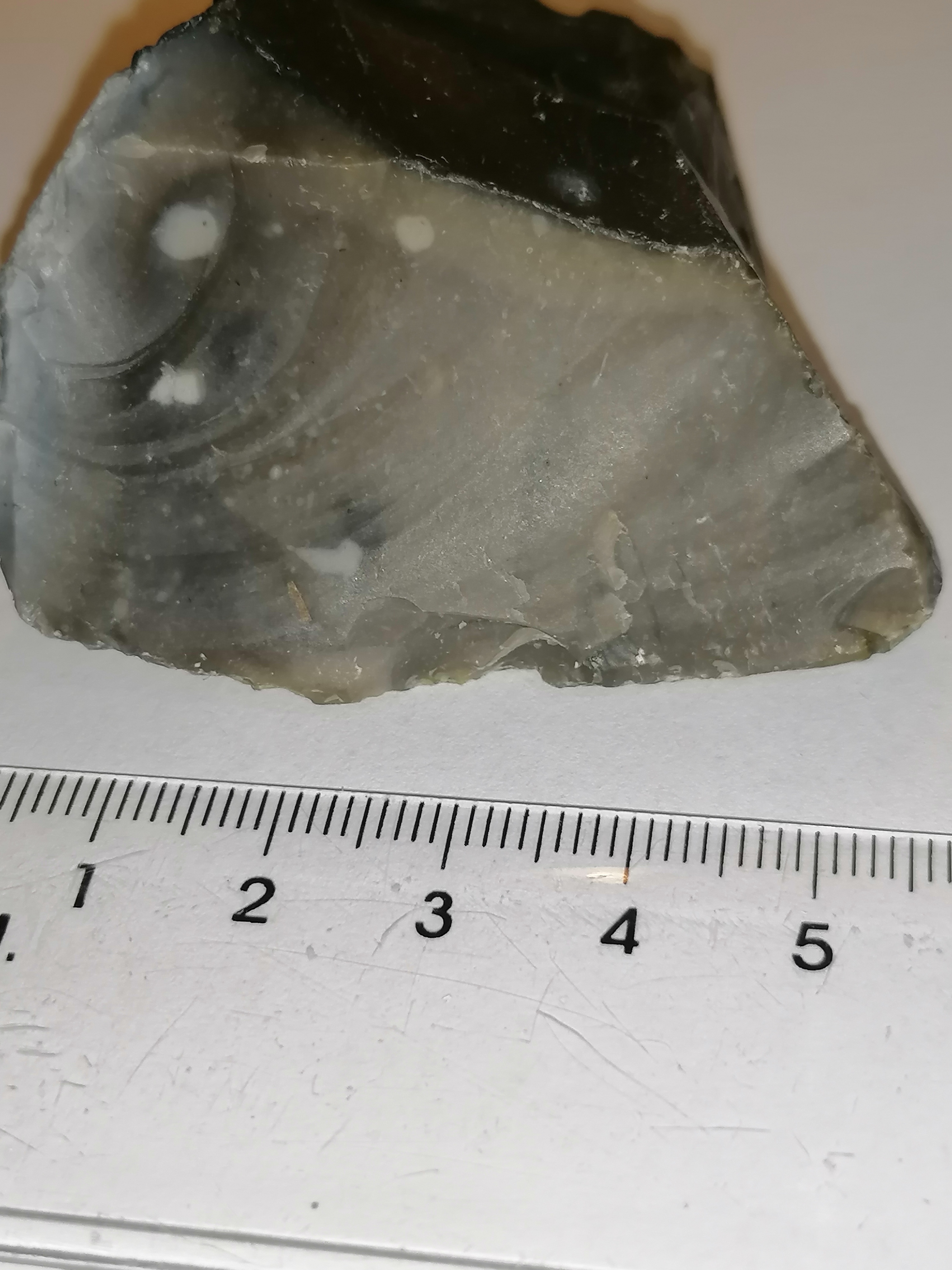 Het stuk waar ik nog het meeste in zie, is het stuk op foto 9, omdat daar de afslag opvallend recht en consistent is, en daarbij aan de andere kant van de hoek ook een soortgelijke afslag weggehaald lijkt te zijn. Het lijkt me zeer onwaarschijnlijk dat dit natuurlijk zo zou zijn ontstaan. Dat gezegd hebbende is de bovenkant van de steen (links), dat wat het afbouwvlak zou moeten zijn, erg onregelmatig. Omdat het er wel op lijkt dat een stuk in elk geval glad en recht is, kan het nog steeds wel een afbouwvlak zijn, met breuk waar de tweetal klingen vanaf geslagen lijken te zijn. Maar ook de breuk is niet een zoals je die bij bewerken zou verwachten. Desondanks mogelijk wel de moeite waard om dit stuk eens aan een specialist te laten zien.