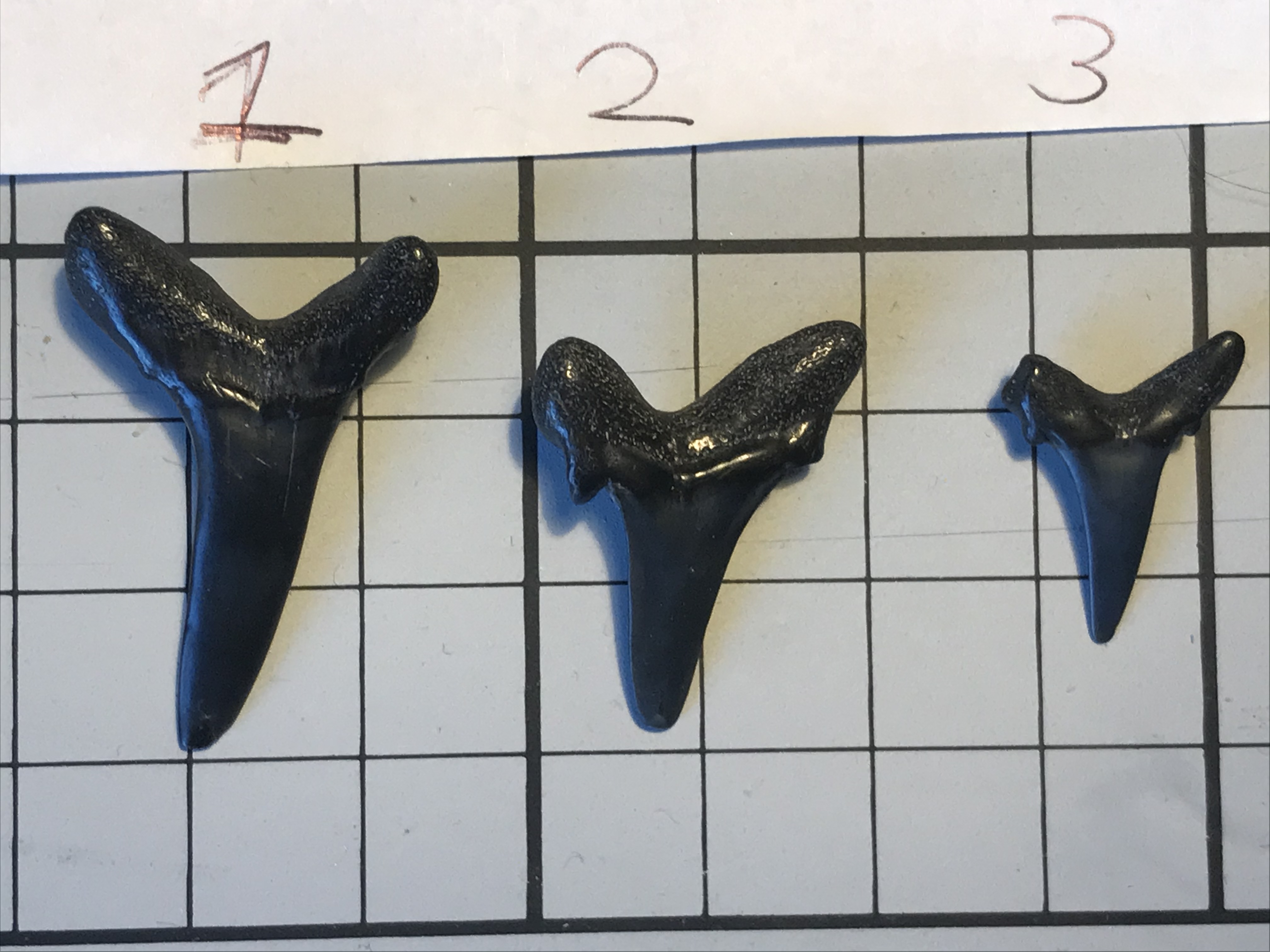 Deze volgende tandjes uit Knokke. Ik heb ze geprobeerd te determineren en bij deze kom ik uit op Striatolamia macrota. Alleen van 6 ben ik niet zeker. Mochten er betere foto’s nodig zijn laat het me weten. Ik heb niet van elke tand precieze foto’s aangezien dan m’n foto geheugen snel opraakt. Nummer 4 is een van m’n grootste Striatolamia macrota’s die ik heb gezien! Enig idee wat 6 kan zijn?