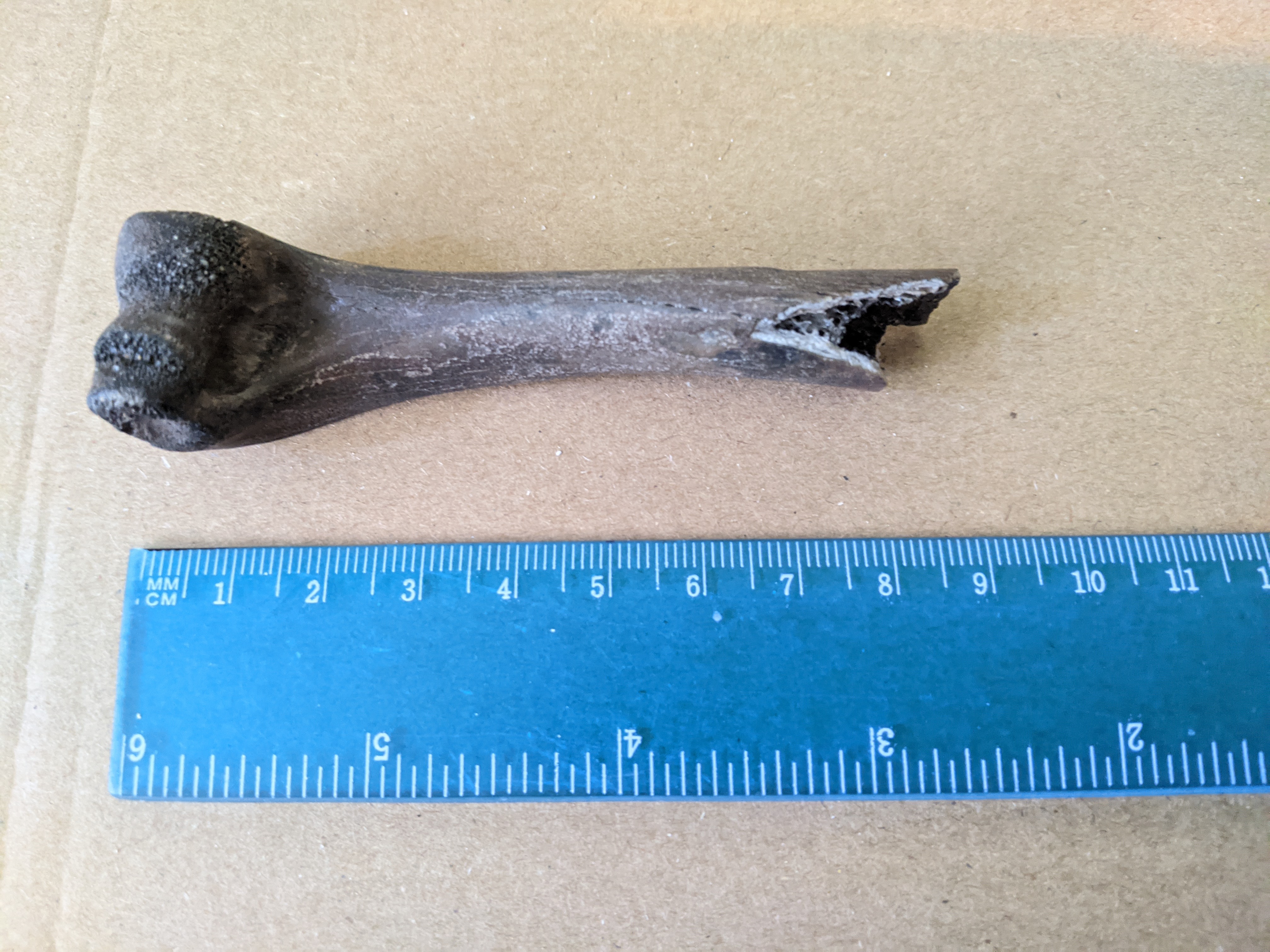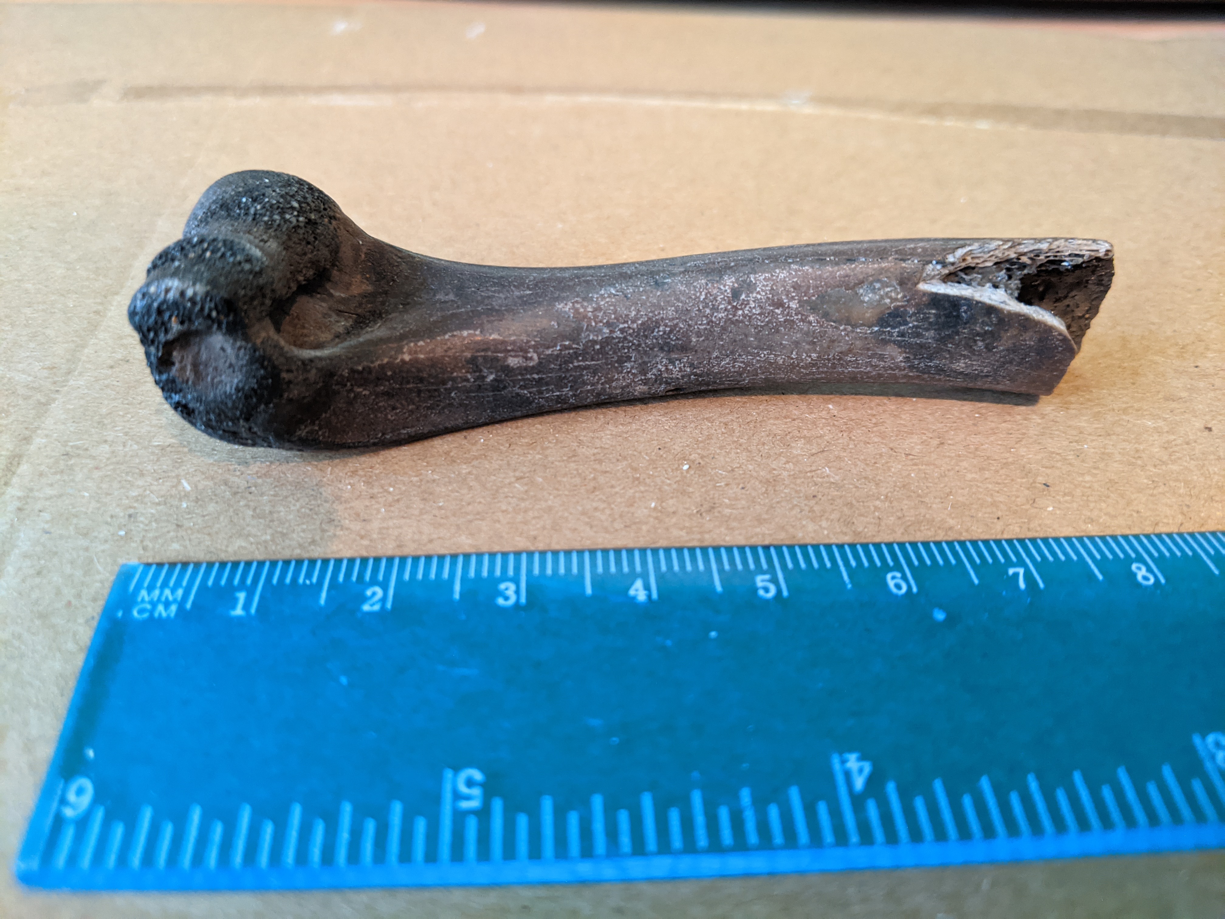 Een opperarmbeen (Humerus) van een kleinere zoogdier zoals de Das, Wolf of bever?