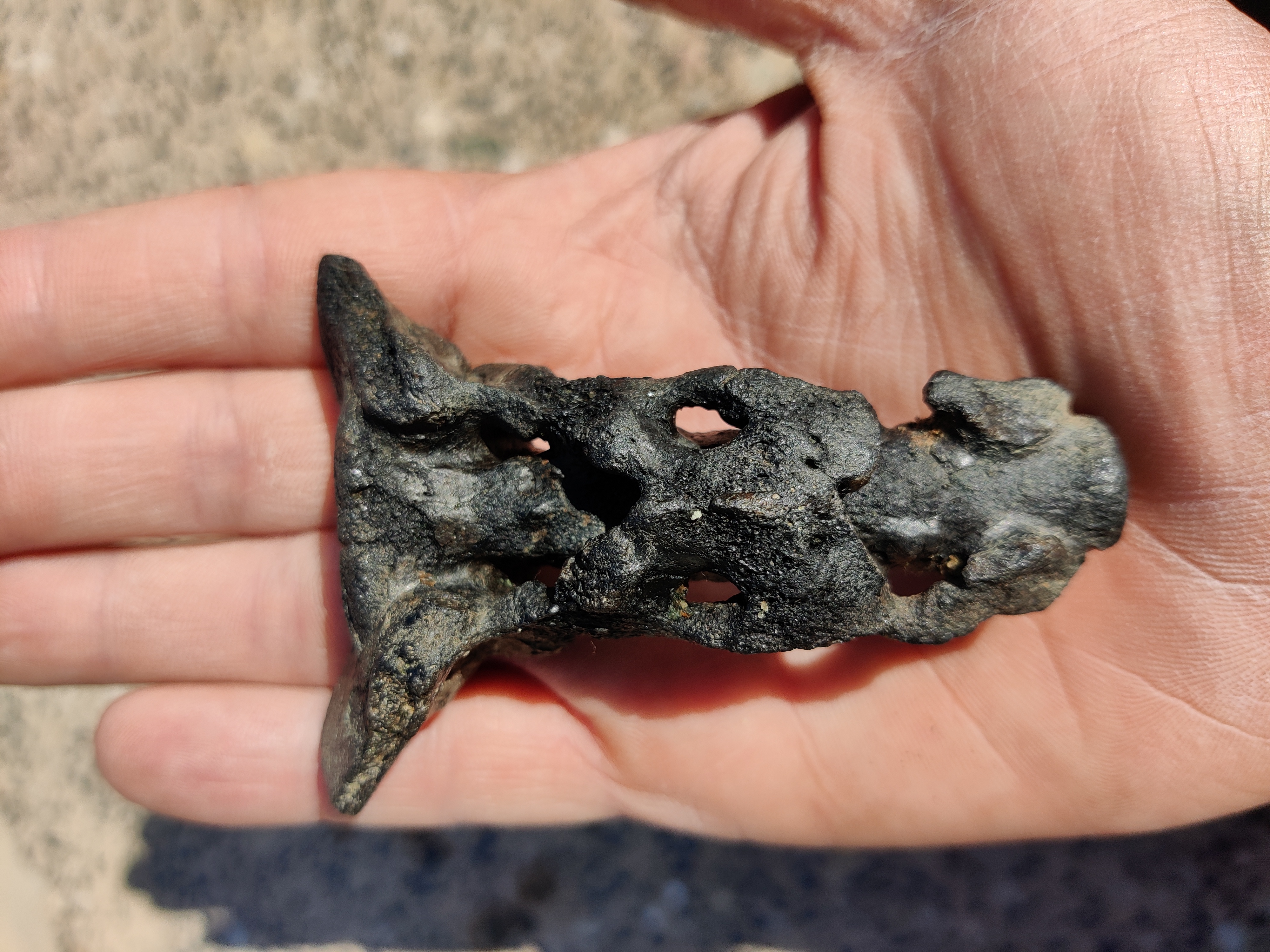 Vanochtend vond ik in Antwerpen (neogeen). Dit versteend bot. Volgens mij is het een stuitbeen van een zeezoogdier, misschien een pliocene zeehond? Ik heb geen meetlat voor schaal bij de hand, ik zal vanavond nog een foto met schaal posten.