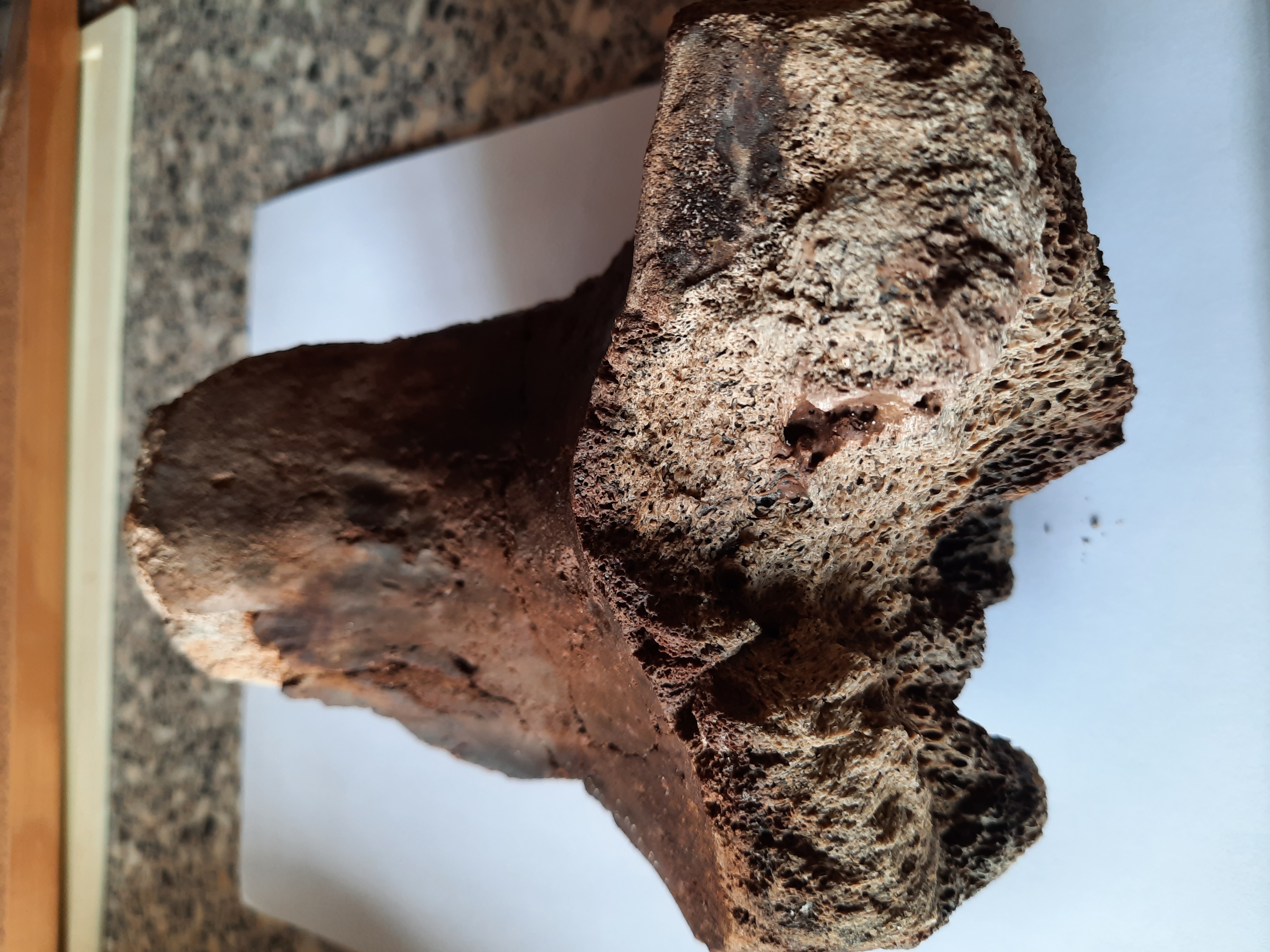 Mijn schoonzoon heeft een stuk bot gevonden tijdens het herinrichten van een tuin.