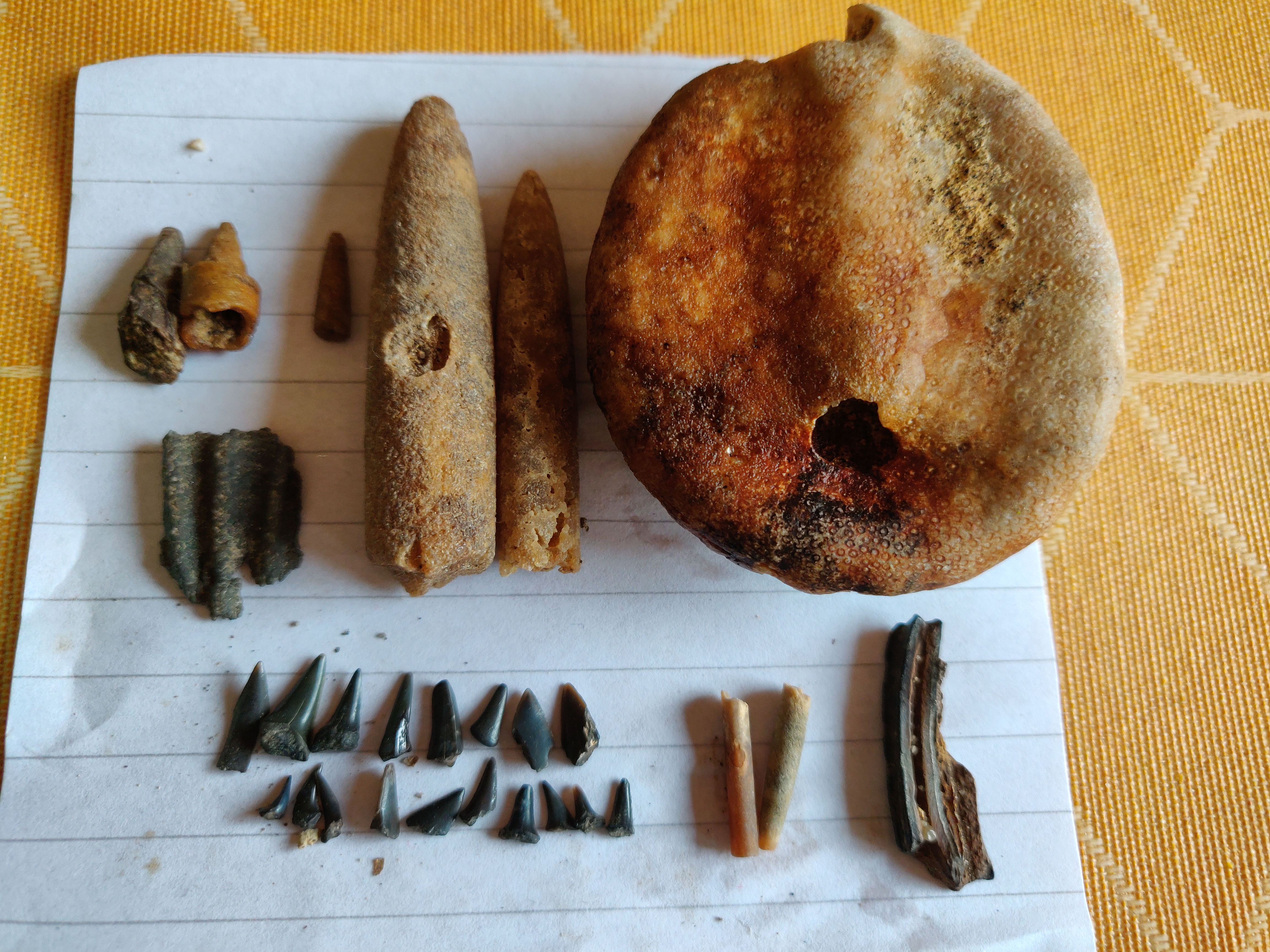 Plus 1 incomplete Echinocorys sp en olifanttandjes?