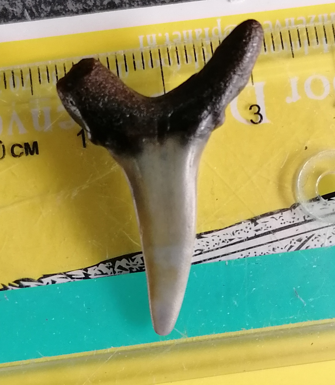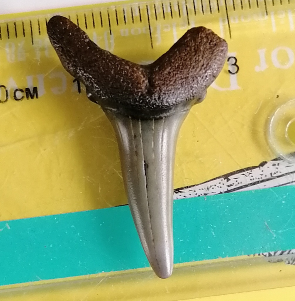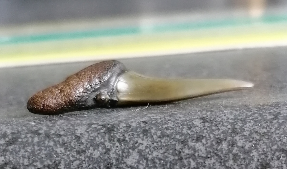 Deze tand heb ik in 2017 gevonden op de kaloot, ik heb hem al eerder een keer geplaatst en heb toen als reactie gekregen van pascal (strandjutters) dat het om een jaekelotodus robustus zou gaan. Ik zelf twijfel hier sterk aan, ik denk eerder door de vorm dat het om een andere soort gaat, de oligocene a. Cuspidatus. Wat denken jullie?