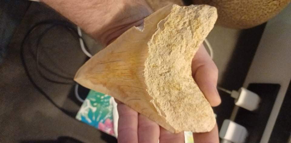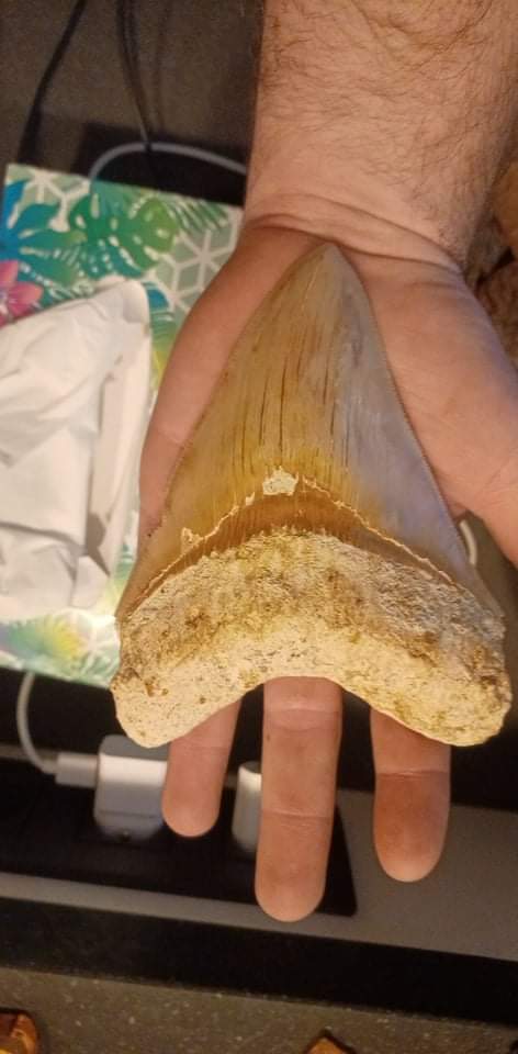 De wortel is matig tot redelijk goed bewaard gebleven maar helaas heeft de tand tijdens het vrijgraven wat schade op gelopen. Maat zal zo rond de 13-14 cm kantlengte zijn en de waarde tussen de 80 en 150 Euro (i.c.m. de behoorlijke stroom aan materiaal die op dit moment van deze vindplaats wordt aangeboden).