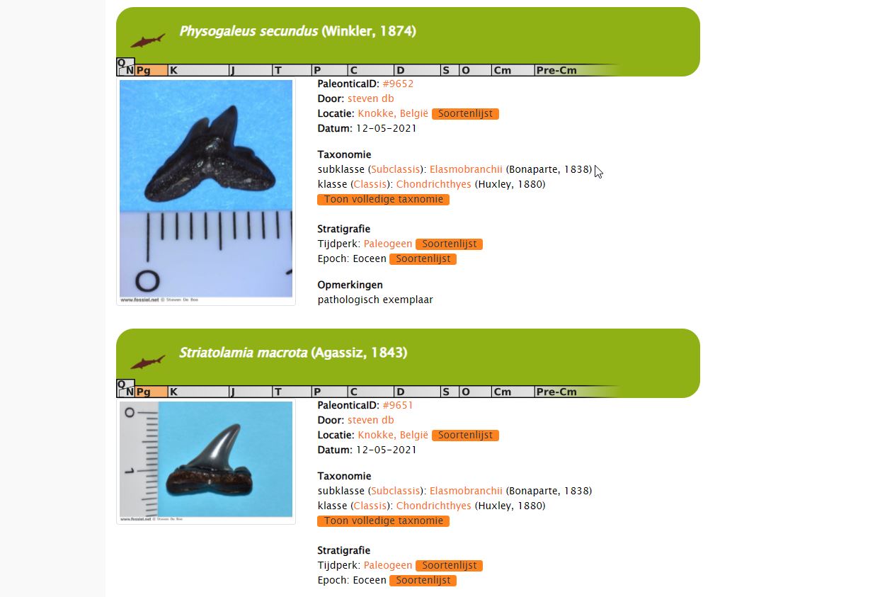 Als je kijkt via de fossielendatabase is dat geen probleem, omdat je dan alle gegevens ziet. Maar als je kijkt via soortenlijst zie je dus niet van wie het komt. En omdat ik altijd zo nieuwsgierig ben… 😊