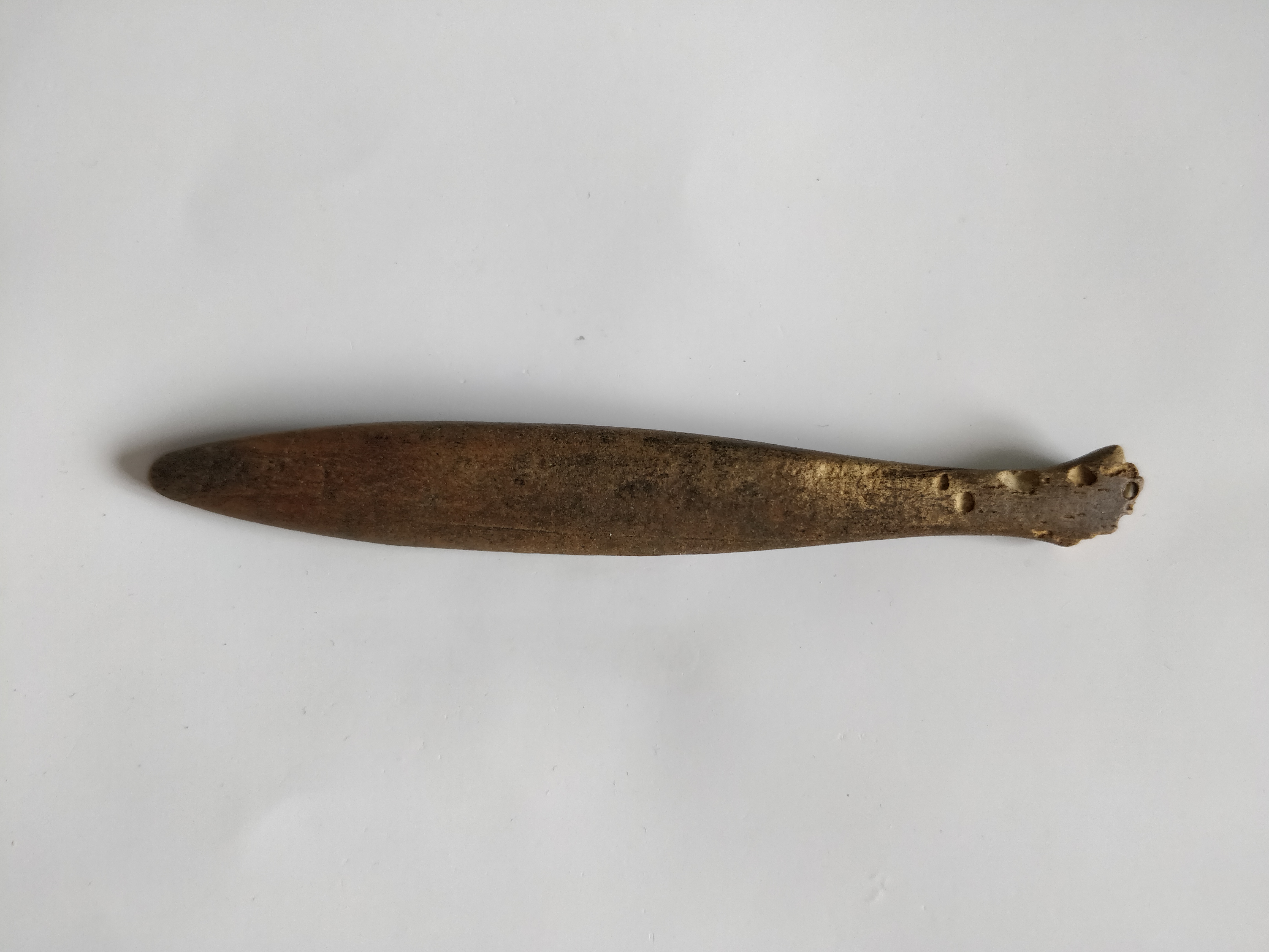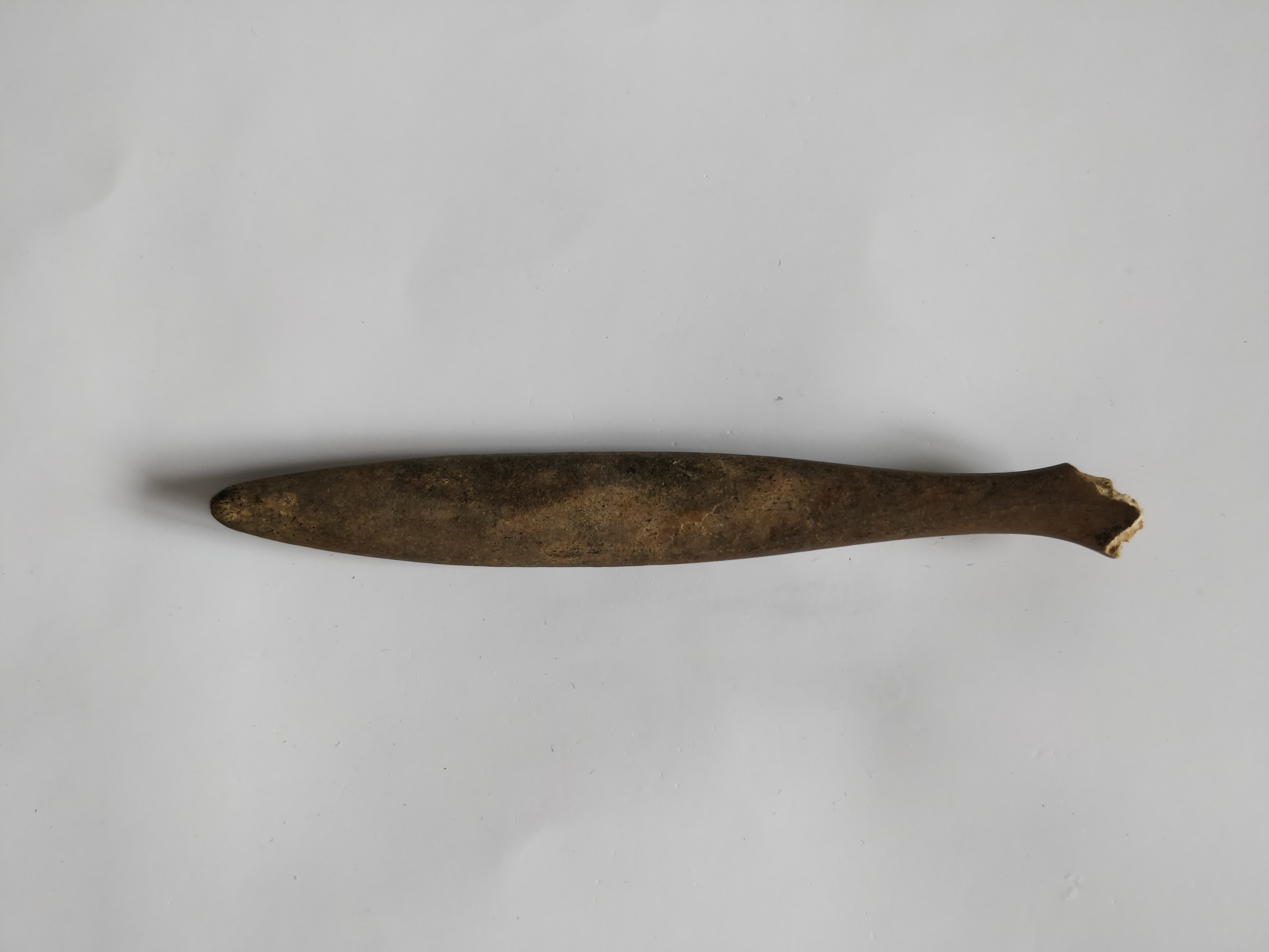 Toevallig zag ik een aantal weken geleden een pagina voorbij komen waar oude tandenborstels gemaakt van bot werden getoond. Na even verder zoeken kwam ik erachter dat het stukje bot wat ik had gevonden de steel van een tandenborstel van bot was.