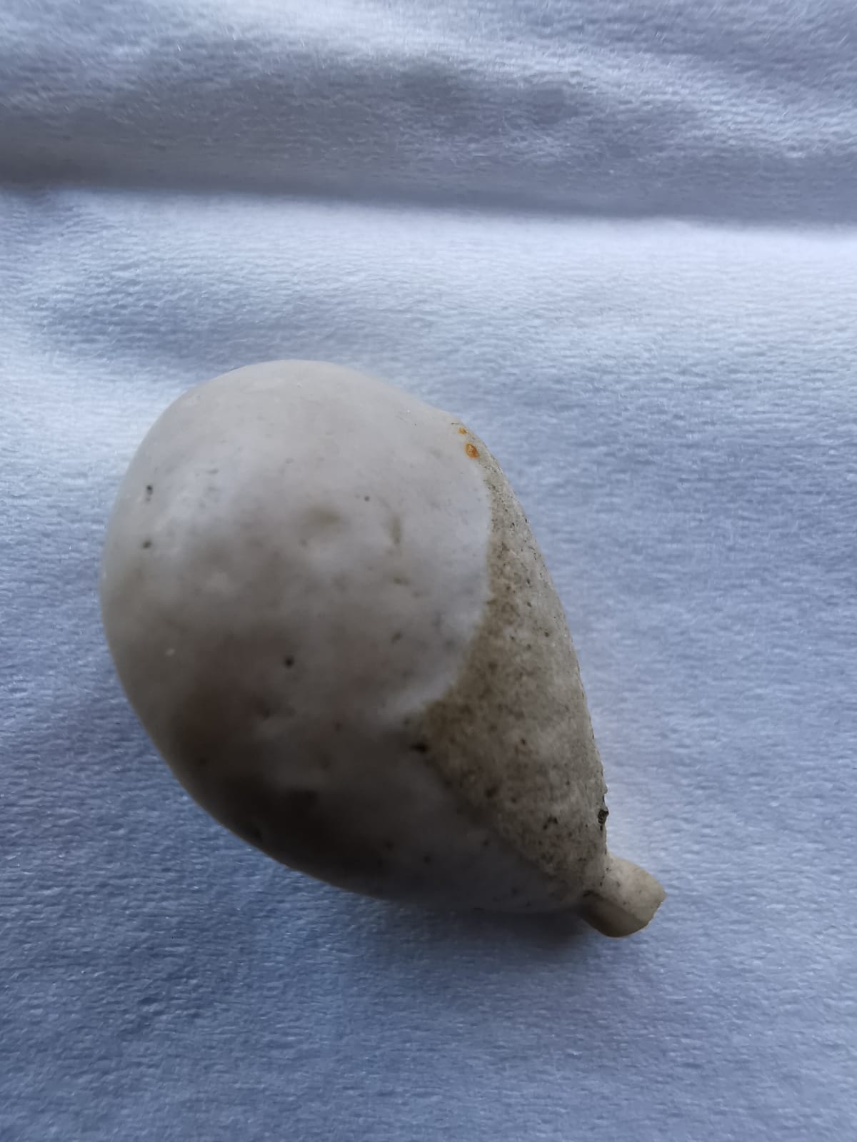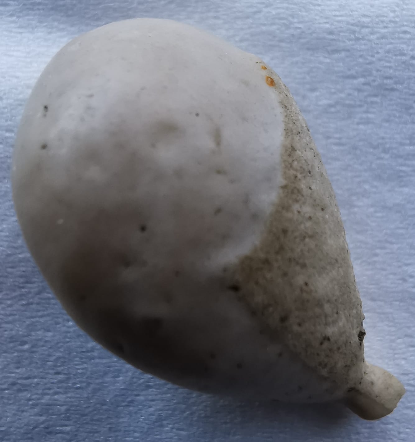 Helaas weet ik dat niet omdat ik daar eigenlijk niet veel van af weet. Ik ben me nog maar sinds kort(na de vondst van een fossiele zee-egel in november) in fossielen gaan verdiepen. Ik heb het overigens altijd wel interessant gevonden. Toen ik dit object in december op een akker zag liggen dacht ik eerst aan een kiezeltje, het "steeltje" trok echter mijn aandacht. Thuis viel mij ook het "schilletje" op. Als ik hem tegen een glas tik klinkt het ook als een scherpe tik. Ik zat al te denken om het een keer mee te nemen naar een museum met fossielen, kijken of ze er daar meer over kunnen vertellen want ik ben wel heel nieuwsgierig eigenlijk. Meer kan ik er echter niet over zeggen. Bedankt FossilDude voor je interesse en mogelijk nog meningen en/of tips👍