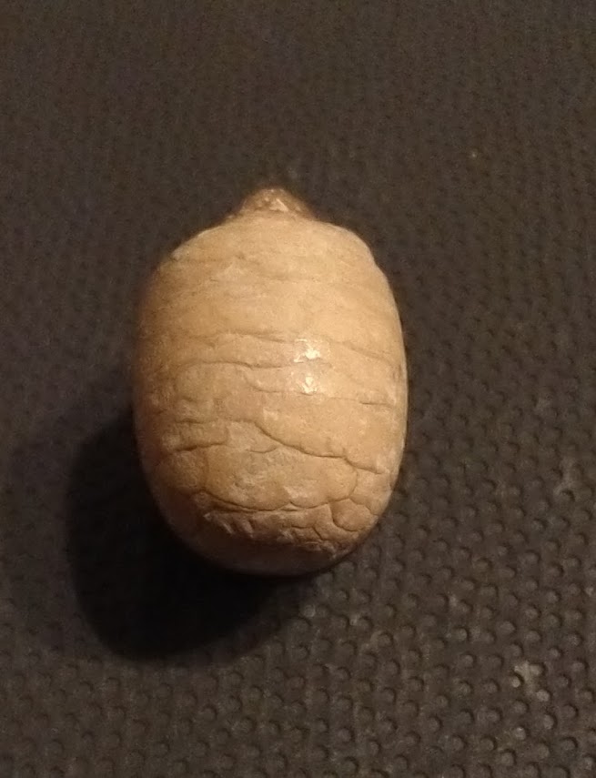 Hulp gevraagd. Gevonden op het strand tussen Escalles en Strouanne in een blok grijswitte kalksteen, klein stukje was zichtbaar aan de buitenkant van het blok. Lijkt op een kleine zaadkegel van een conifeer-achtige. Afmetingen: L 25 mm, B 17 mm. Plantaardige vondsten van deze vindplaats zijn zeldzaam, wie weet meer van dit soort materiaal ?