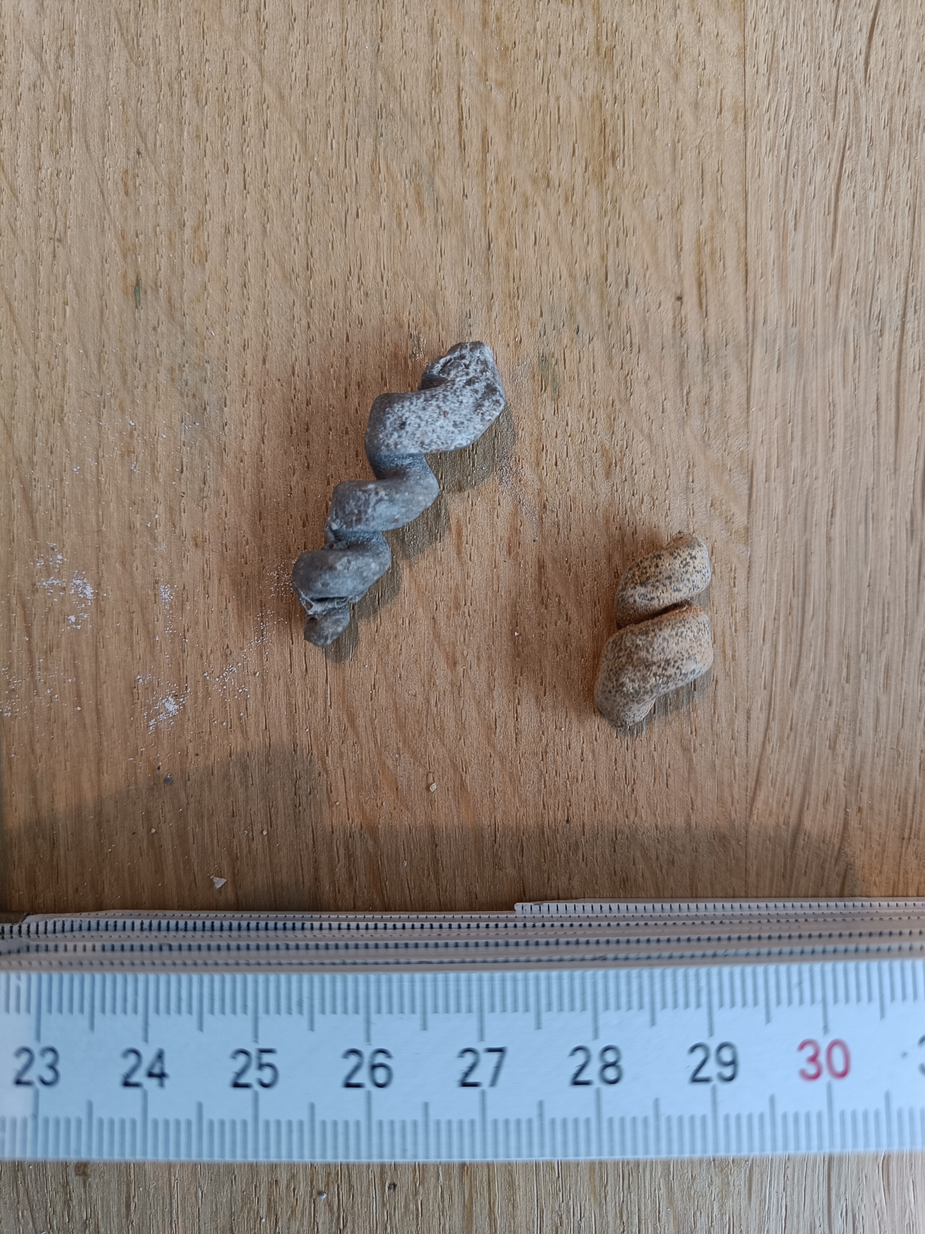 - Eerste foto zijn geen fossielen, maar mineralen, te weten granaat-kristallen, waarschijnlijk almandien.