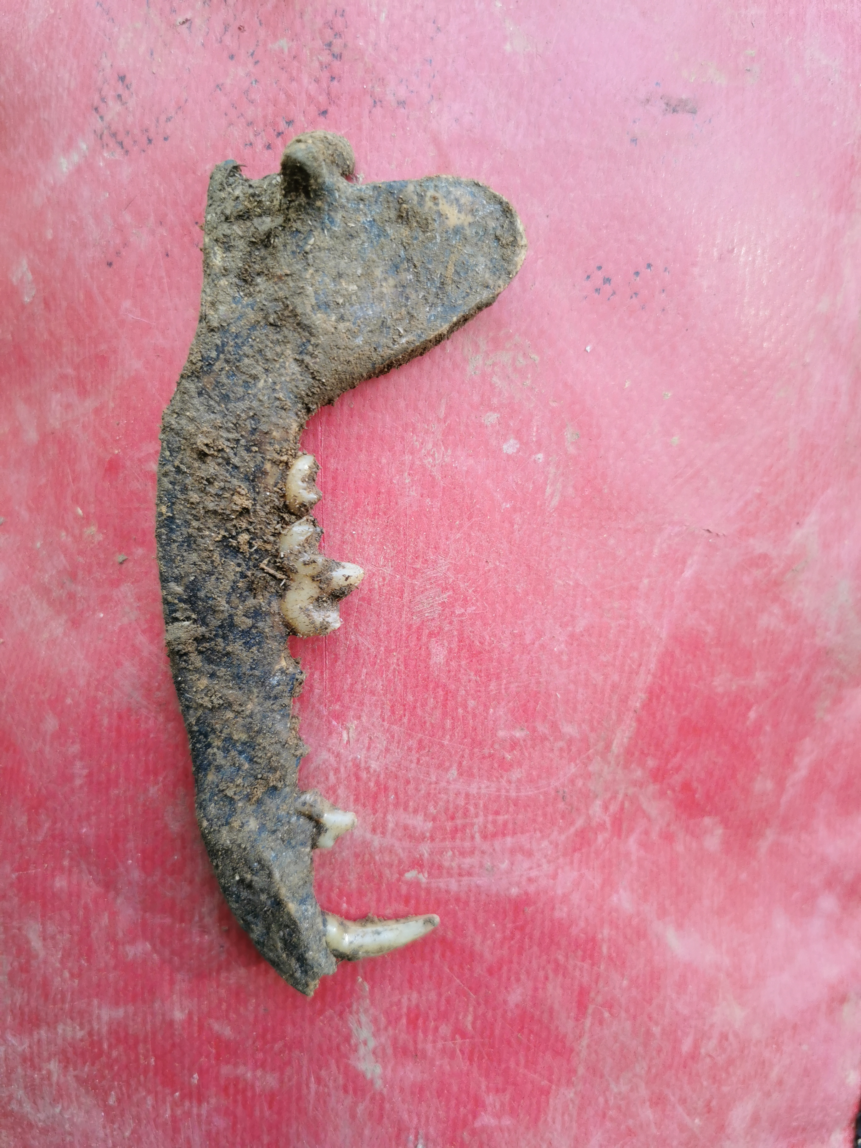 Ik denk dat het wat te klein is voor vos. Hierbij een recente foto van een kaakje dat ik vorig weekend heb opgegraven. Het kaakje is wel niet meer in mijn bezit en werd door iemand anders (voor haar studenten) meegenomen. Dus ik kan geen extra foto's nemen.