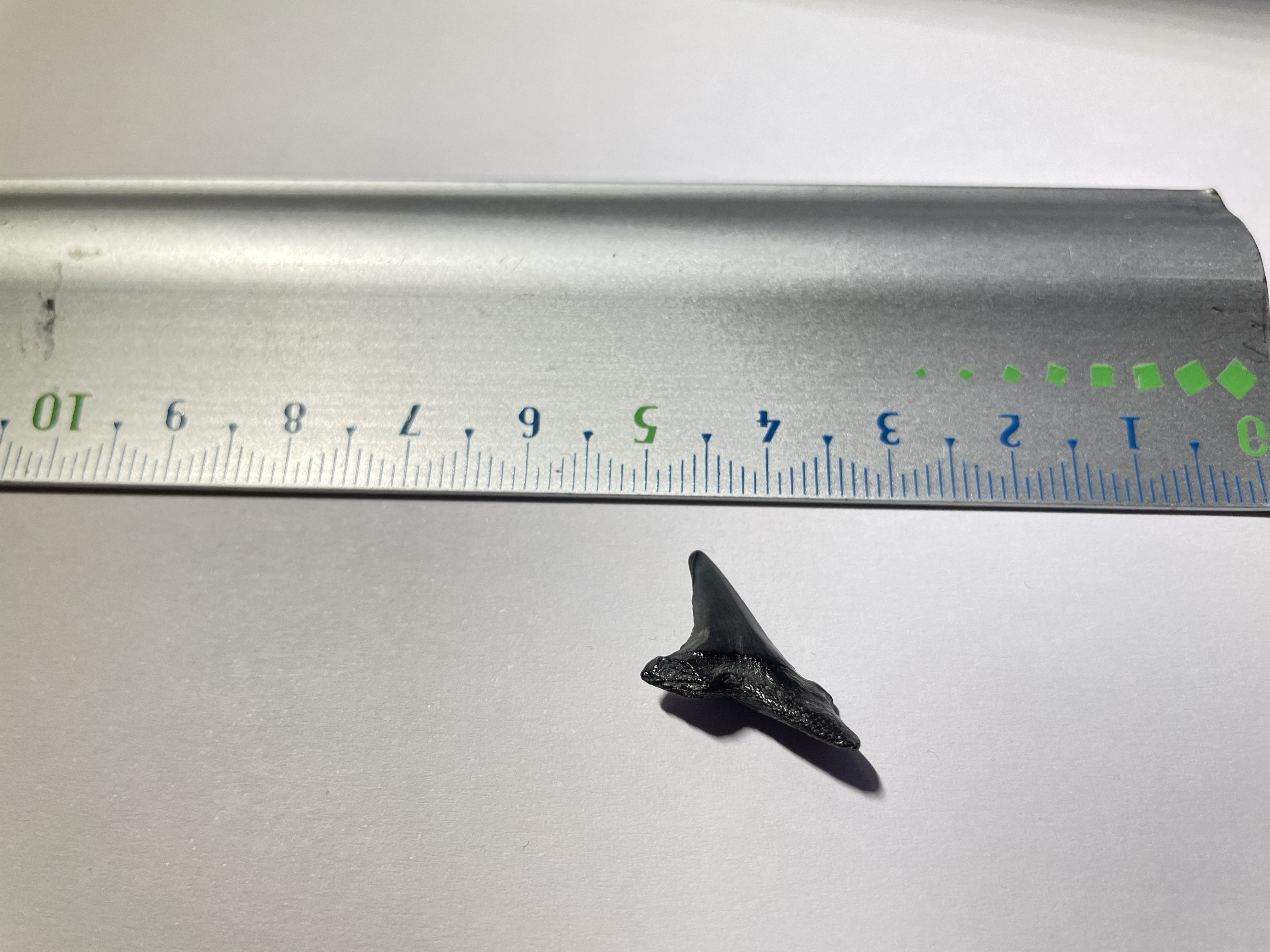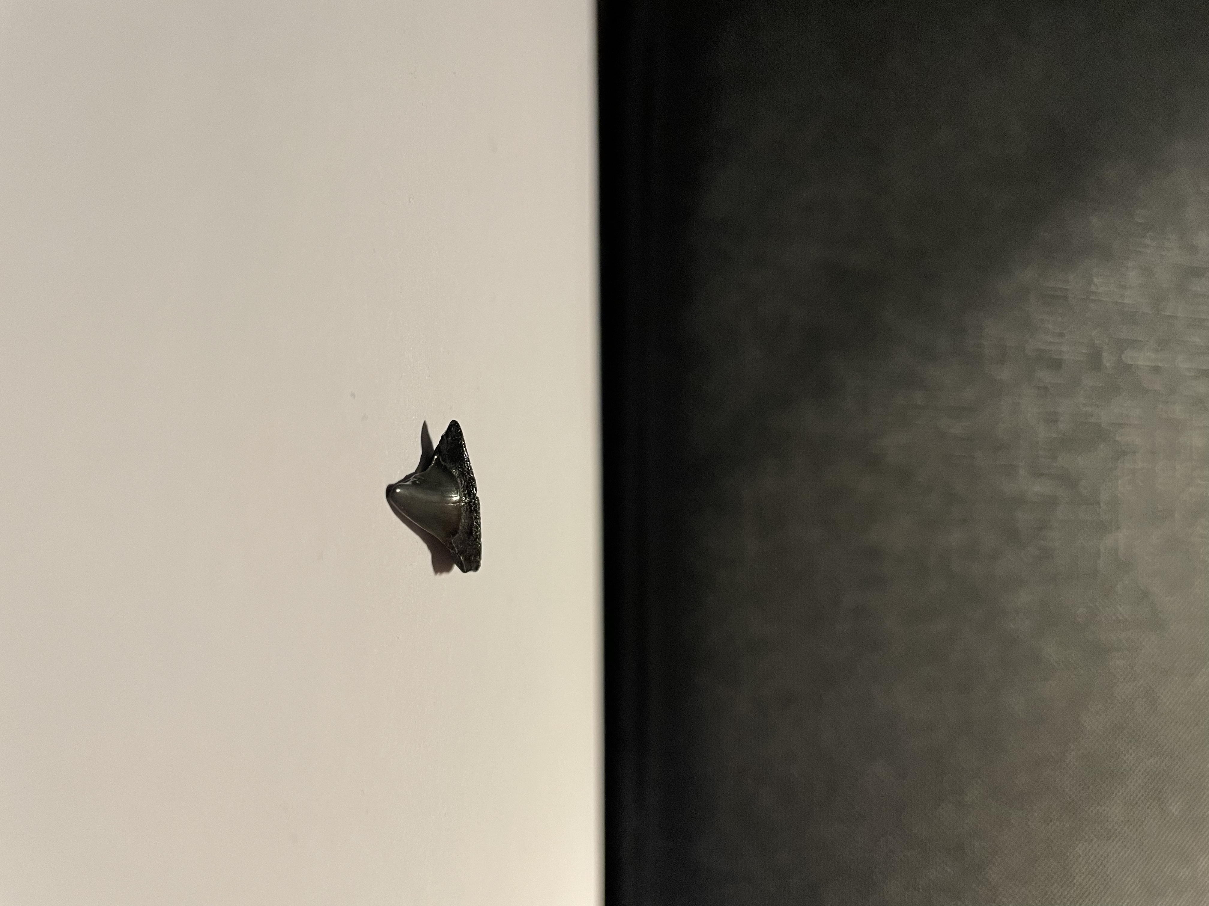 Ik heb geprobeerd om nog een paar foto’s te nemen van deze tand maar wegens mijn gebrek aan ervaring in het verzamelen van fossielen ken ik de benamingen van de verschillende zijde van een haaientand niet.