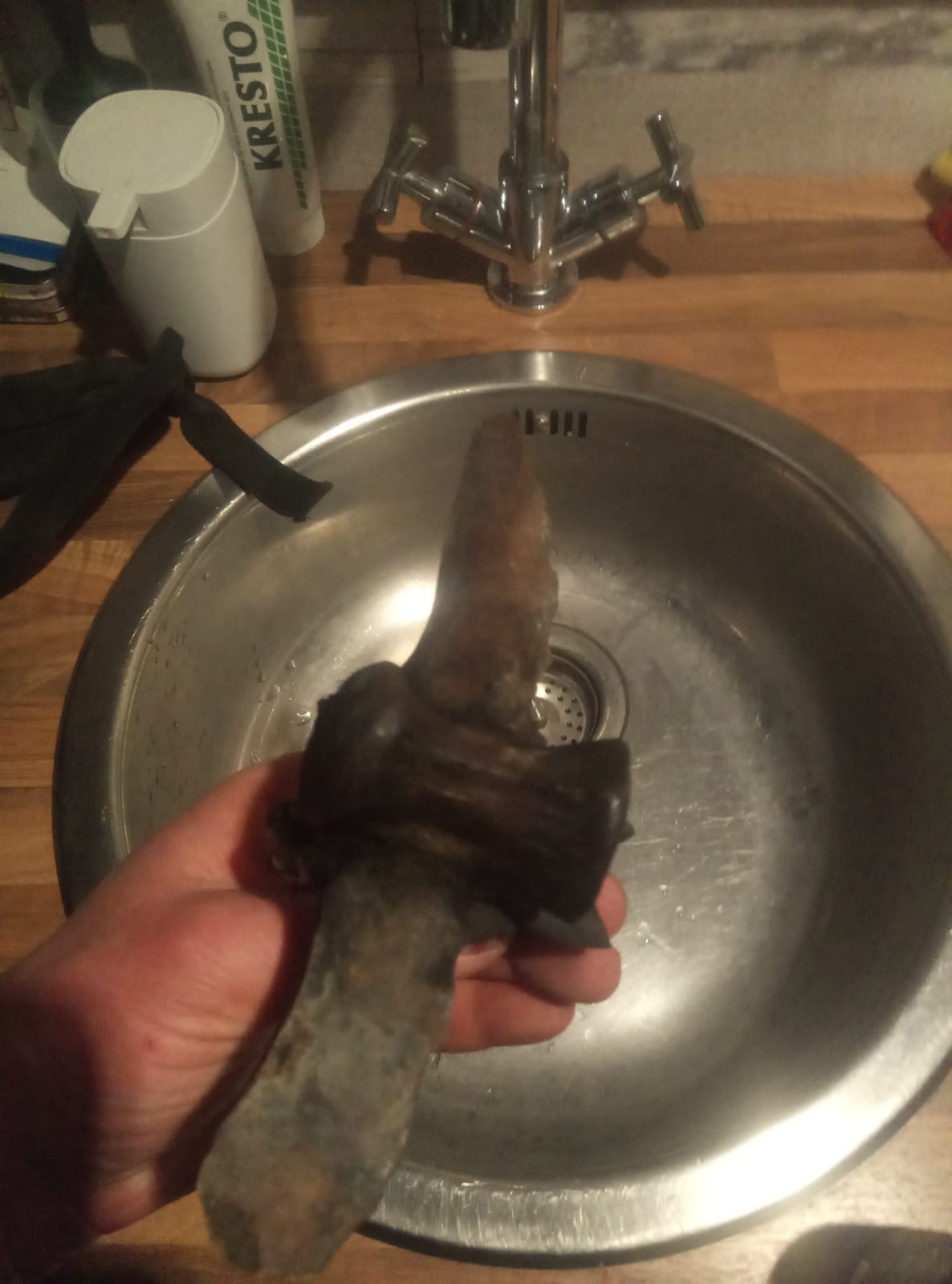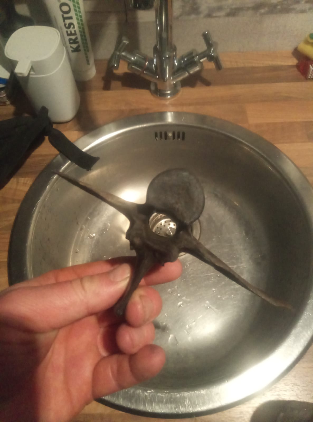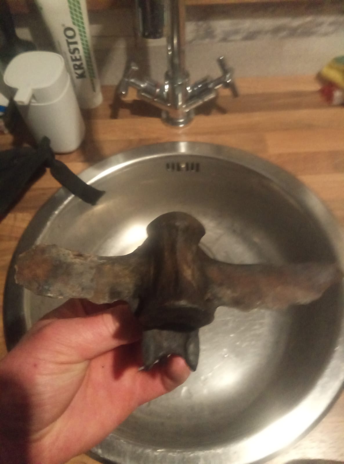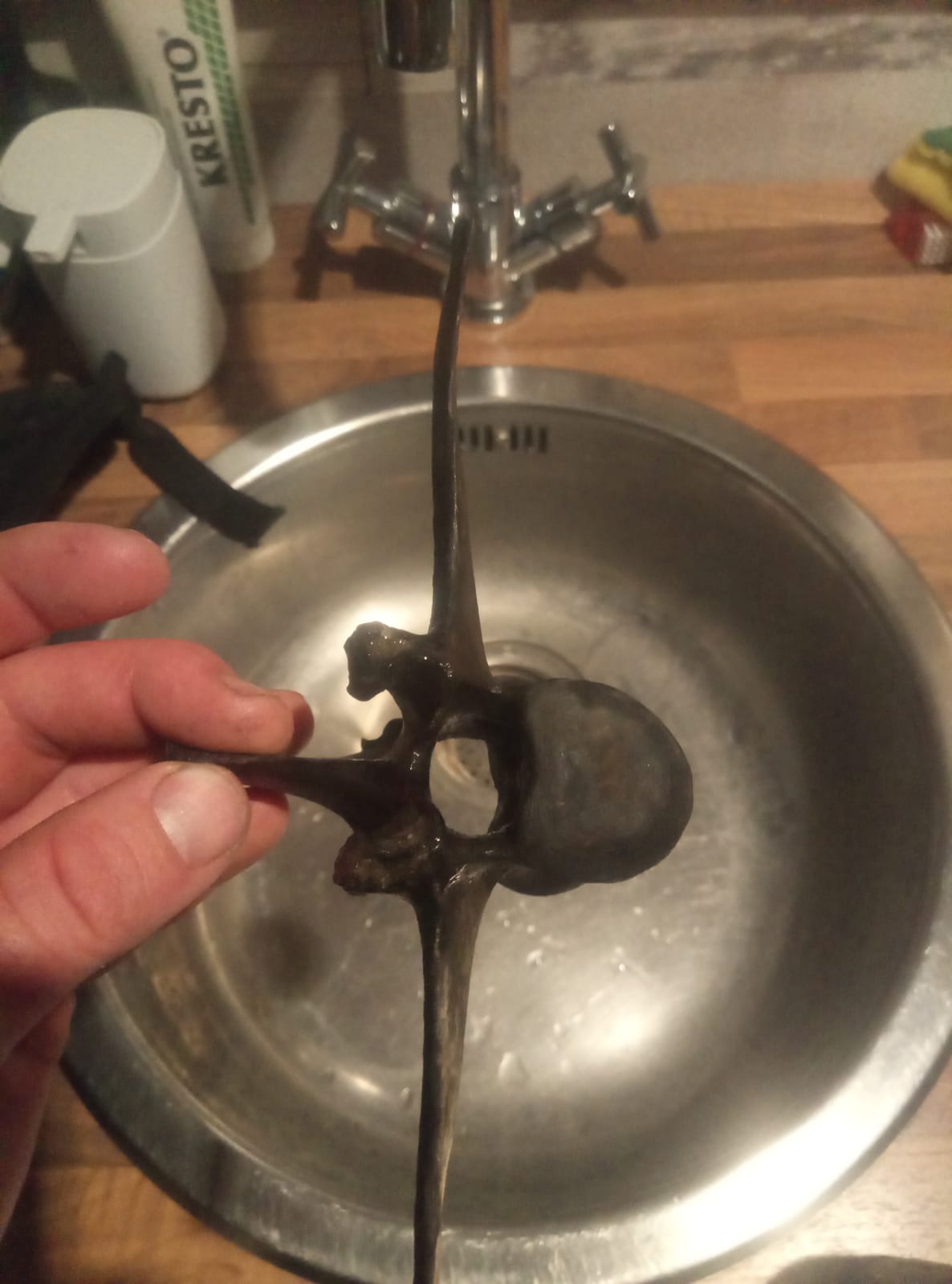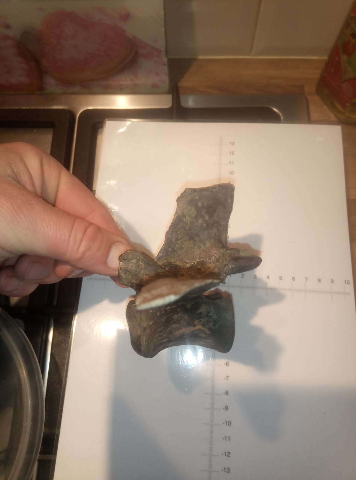 Een maat van me heeft tijdens het zoeken (met de metaaldetector) in stortgrond een grote wervel gevonden.