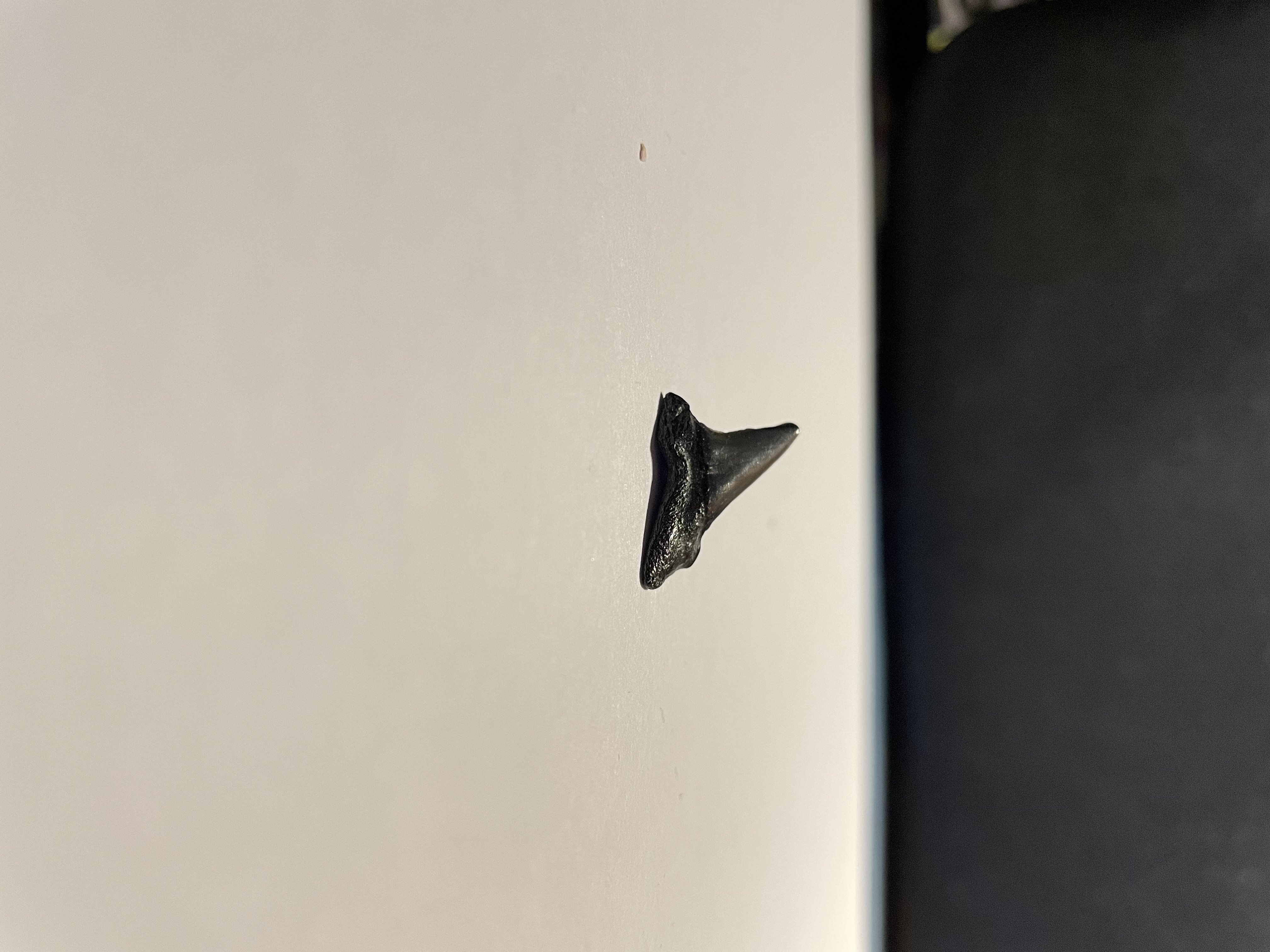 Ik heb geprobeerd om nog een paar foto’s te nemen van deze tand maar wegens mijn gebrek aan ervaring in het verzamelen van fossielen ken ik de benamingen van de verschillende zijde van een haaientand niet.