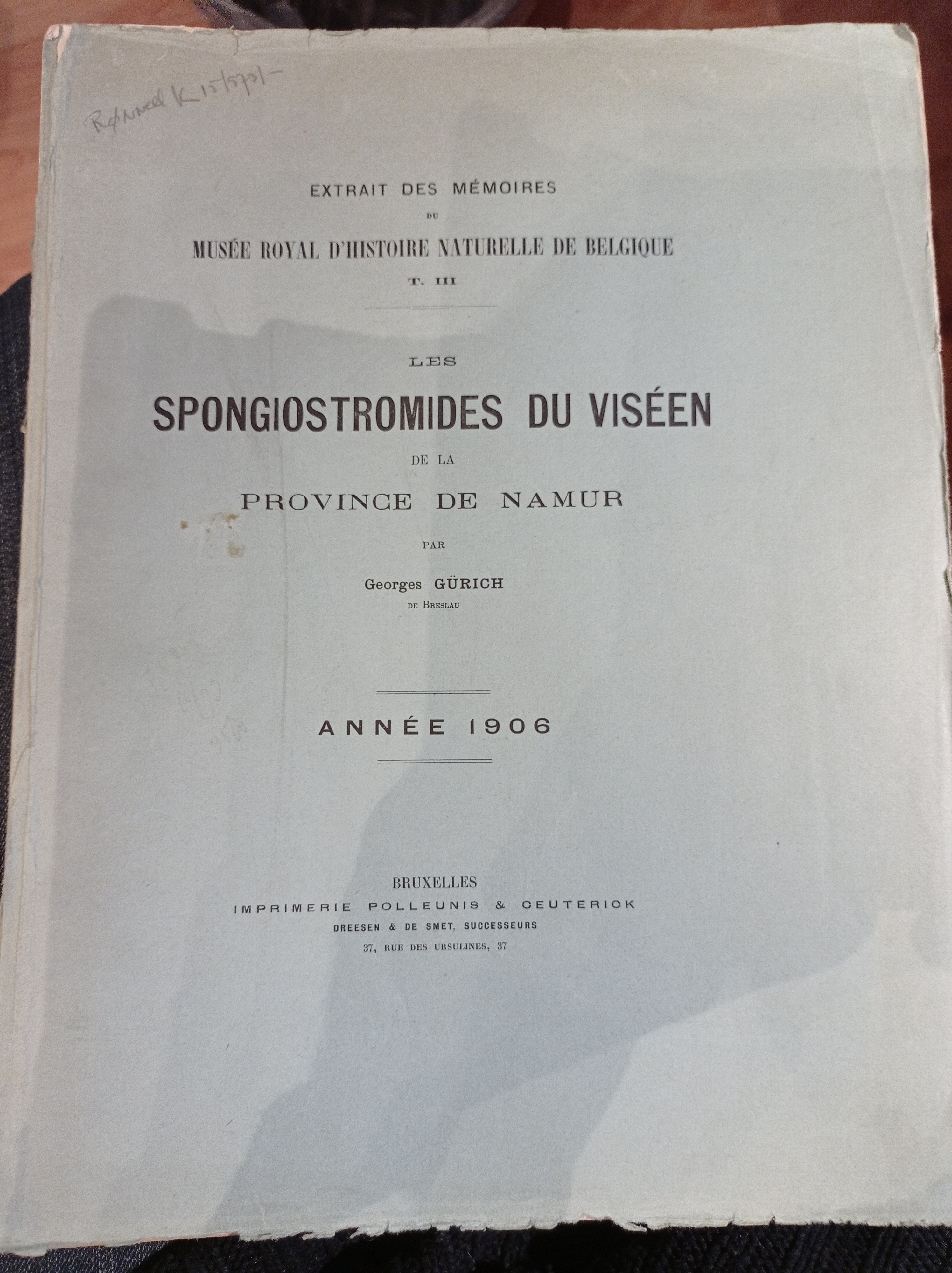 Gürich, Georges - Les spongiostromides du Viséen de la province de Namur. ?
