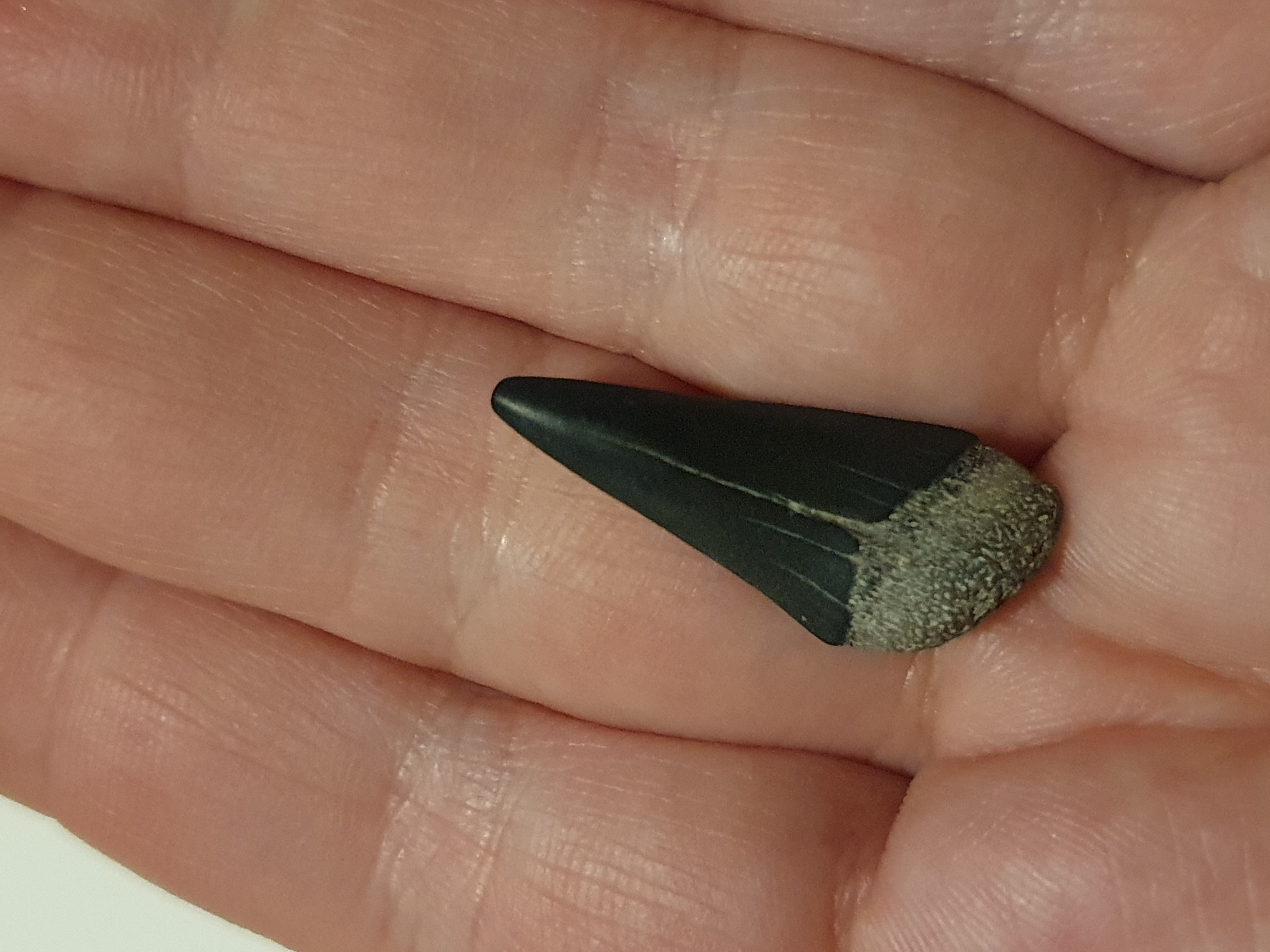 Deze (haaien)tand heb ik gevonden op de mv2. Is er nog iets over te zeggen qua ouderdom of soort? Hij is ongeveer 2cm groot.
