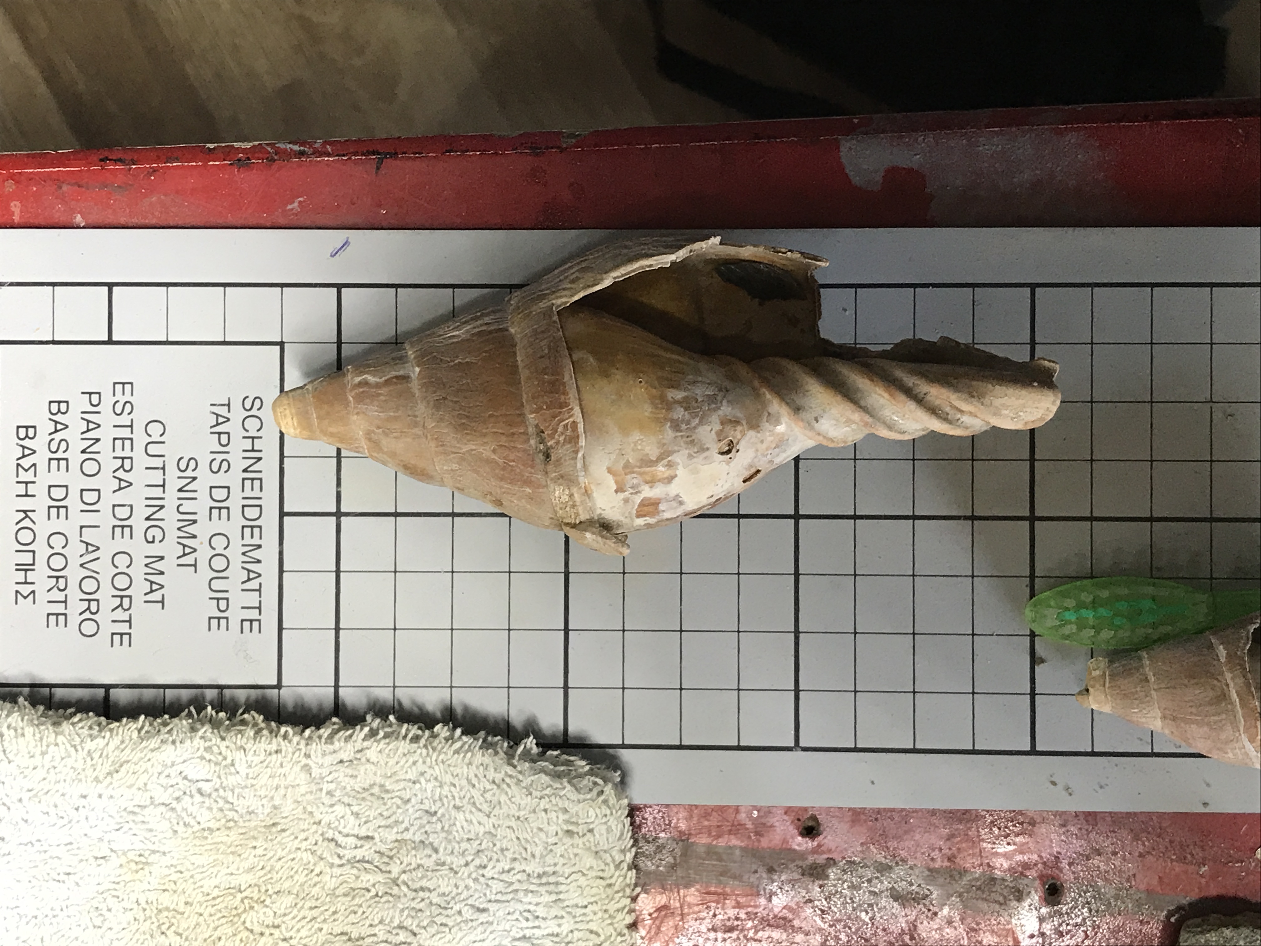 Ik heb vandaag deze enorme scaphella lamberti gevonden op een schelpenpad! Het pad ligt er al heel wat jaren en er lopen altijd wel mensen overheen. Het meet maar liefst 13 cm! En als die helemaal compleet was geweest 15 cm minimaal! Dus, altijd oogje open houden in de buurt van schelpenpaden