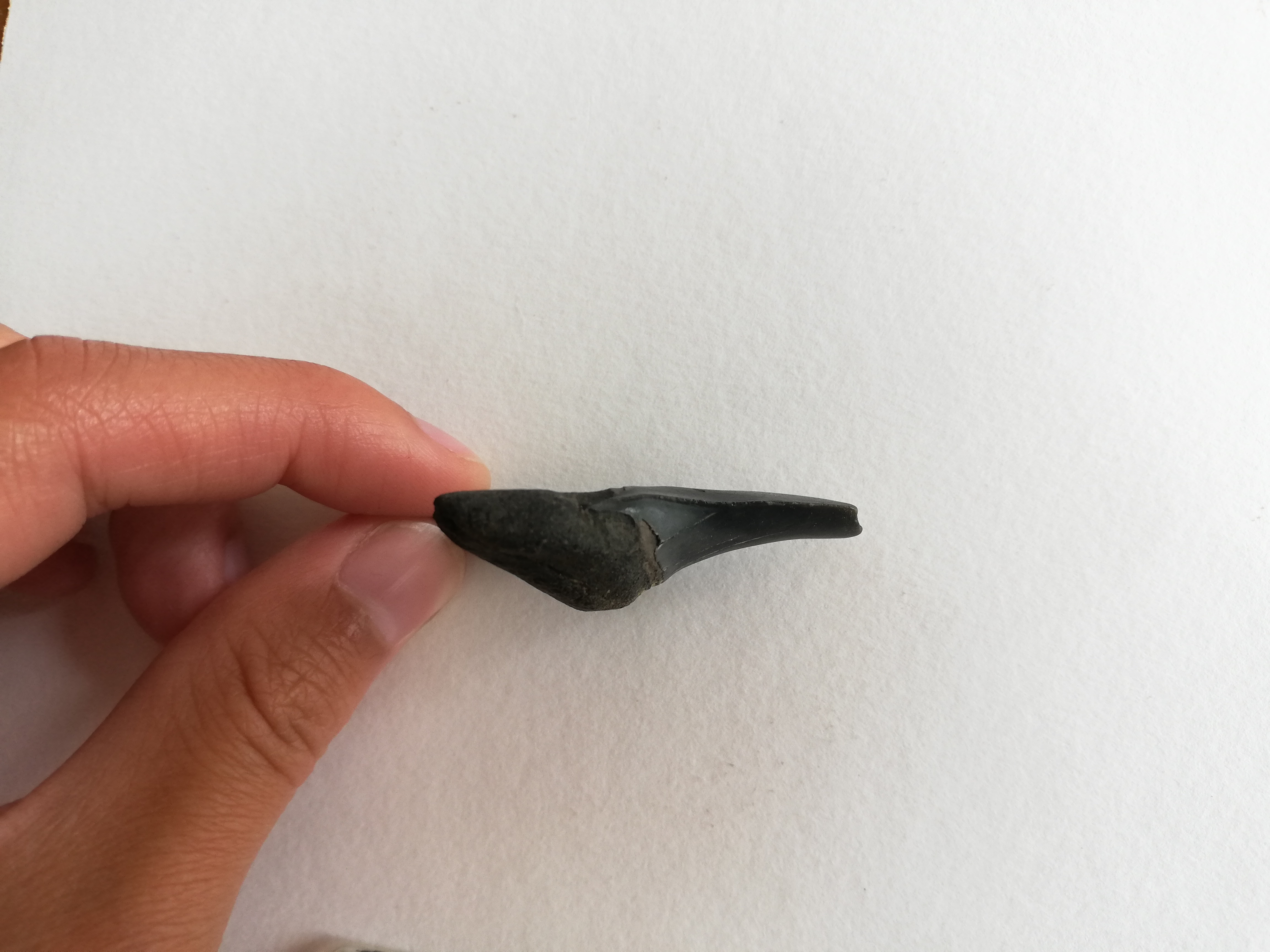 (In bijlage enkele foto's, de punt van de tand was helaas reeds afgebroken bij vondst).