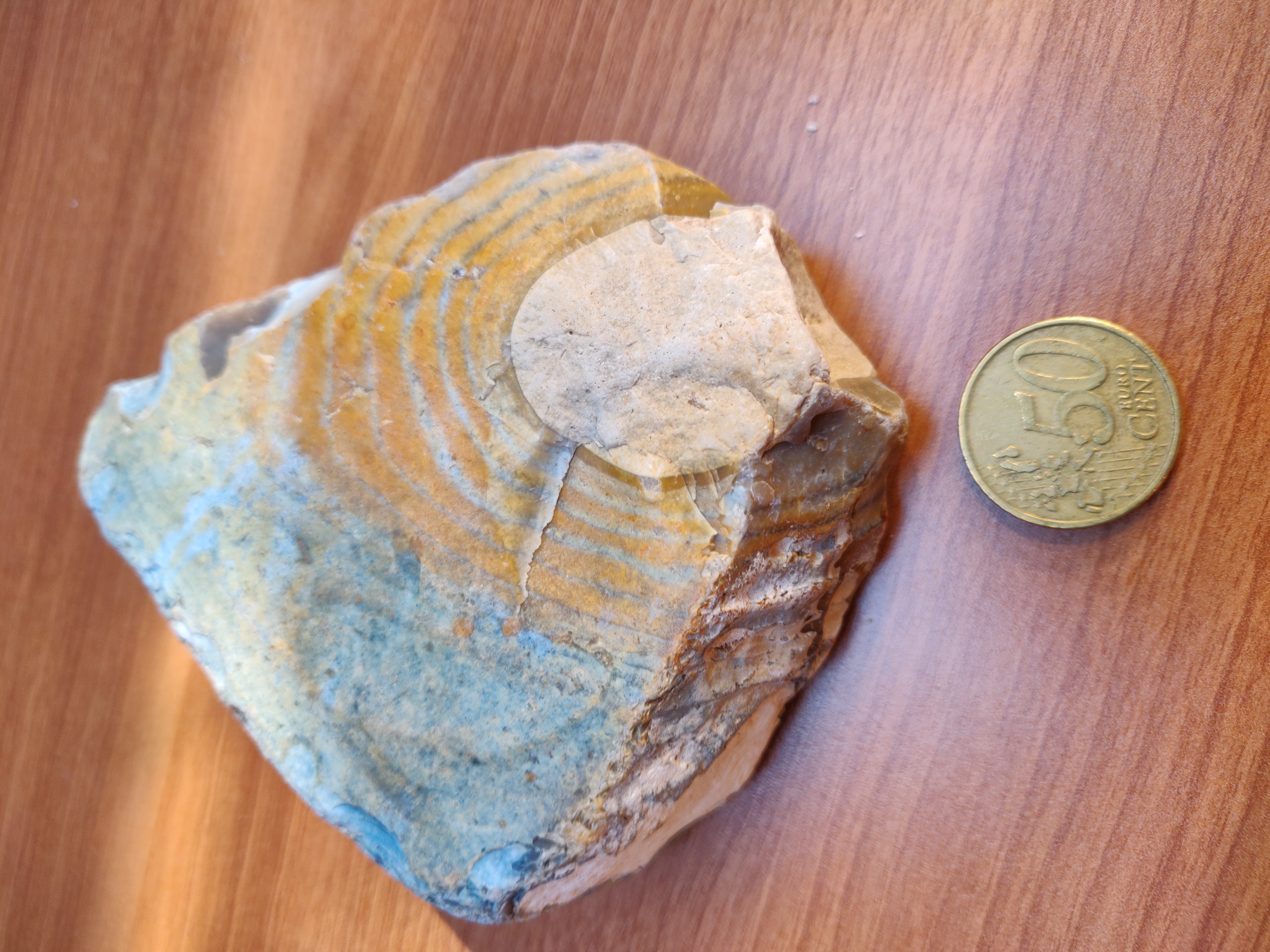 Wederom in Denemarken op Funen dit (zie foto's) gevonden. Het lijkt op een stuk hout? Ik zie een kern en jaarringen naar mijn mening. Alvast bedankt voor jullie deskundigheid!