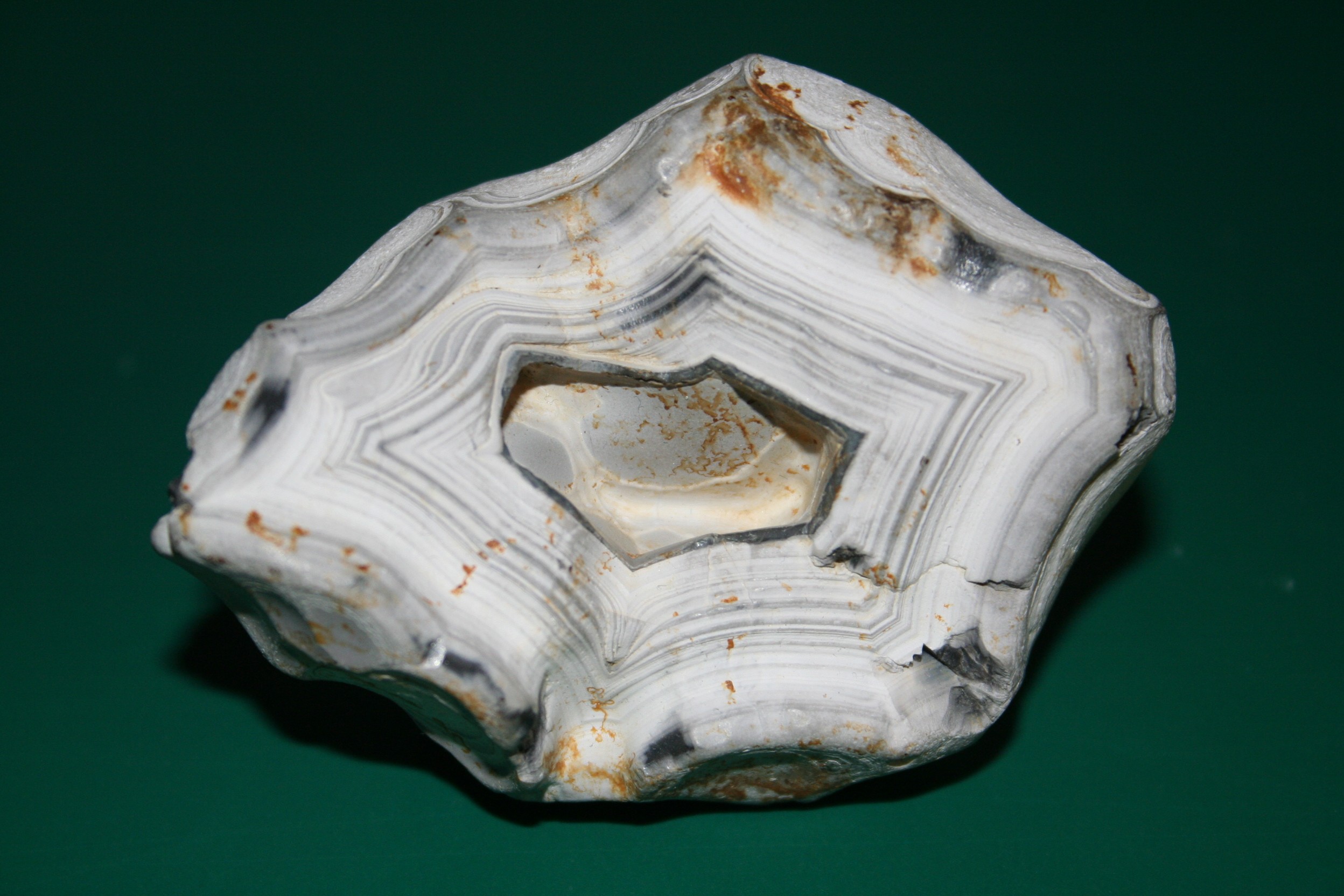 Agaten ontstaan in gesteenteholtes en vullen deze van buiten naar binnen.