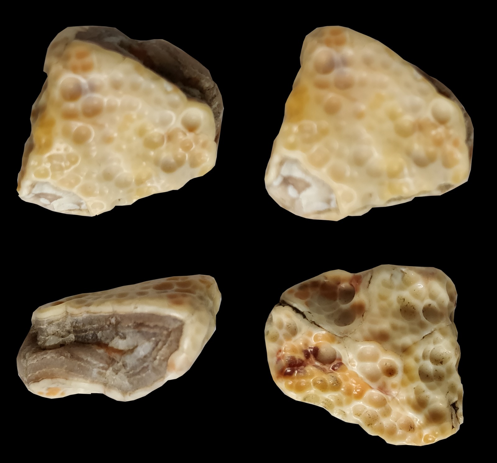 Bij jouw steentjes lijken de (nu omgekeerde) bobbeltjes nog extra uitgeblazen door aanhoudende wind die ook windkanters kan laten ontstaan. Het glimmen is daar ook een teken van ('windlak').
