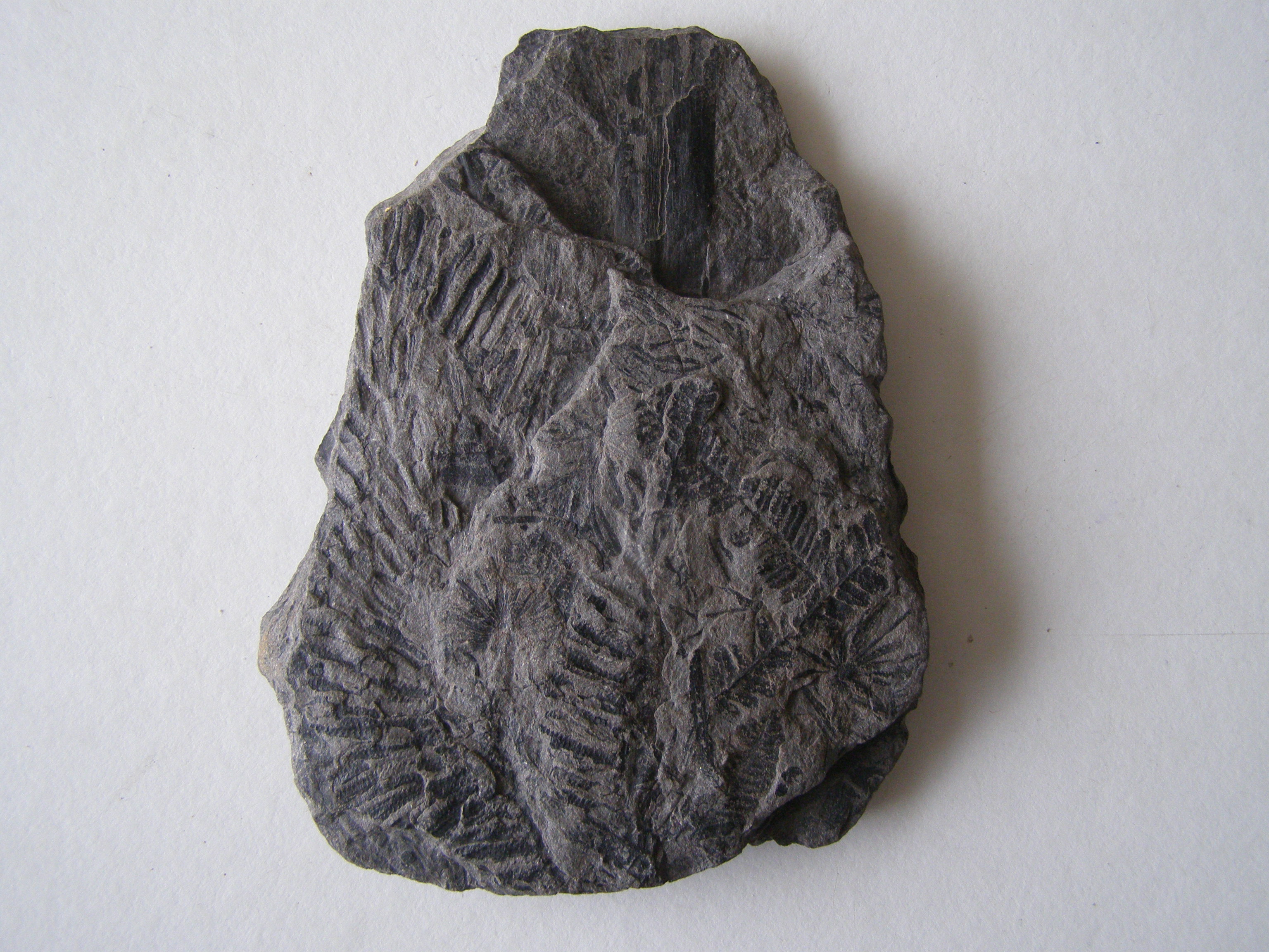 Hallo, ik ben in bezit gekomen van een plaat Carbonische zandsteen vol met varentjes. De vorige eigenaar wist niet waar het vandaan kwam. Ik heb een poging gedaan om enkele thuis te brengen.