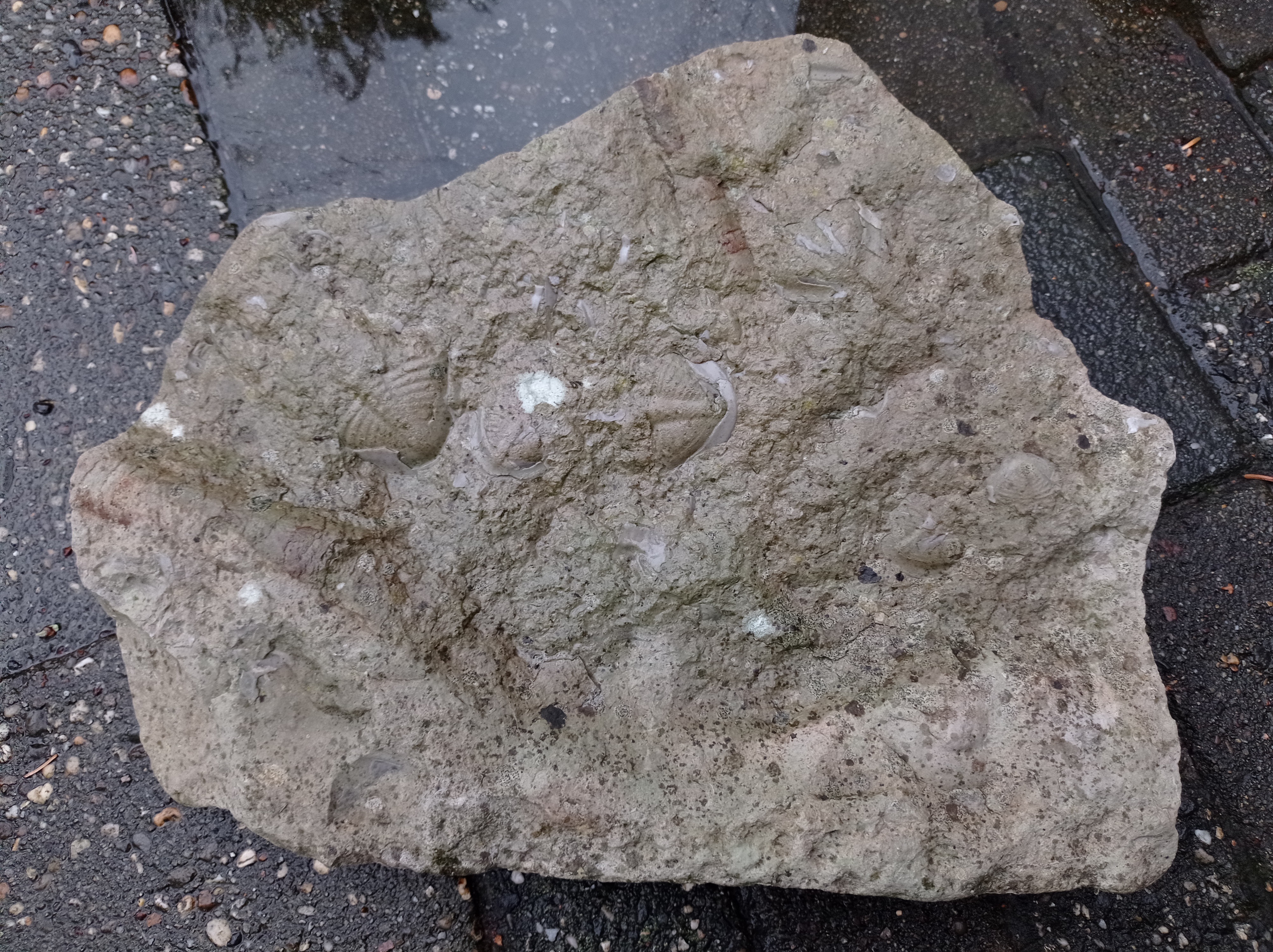 Een plak Ordovicische kalksteen, zwerfsteen uit Schleswig-Holstein, die ik als aandenken heb gekregen van de weduwe van een overleden hobbyvriend.