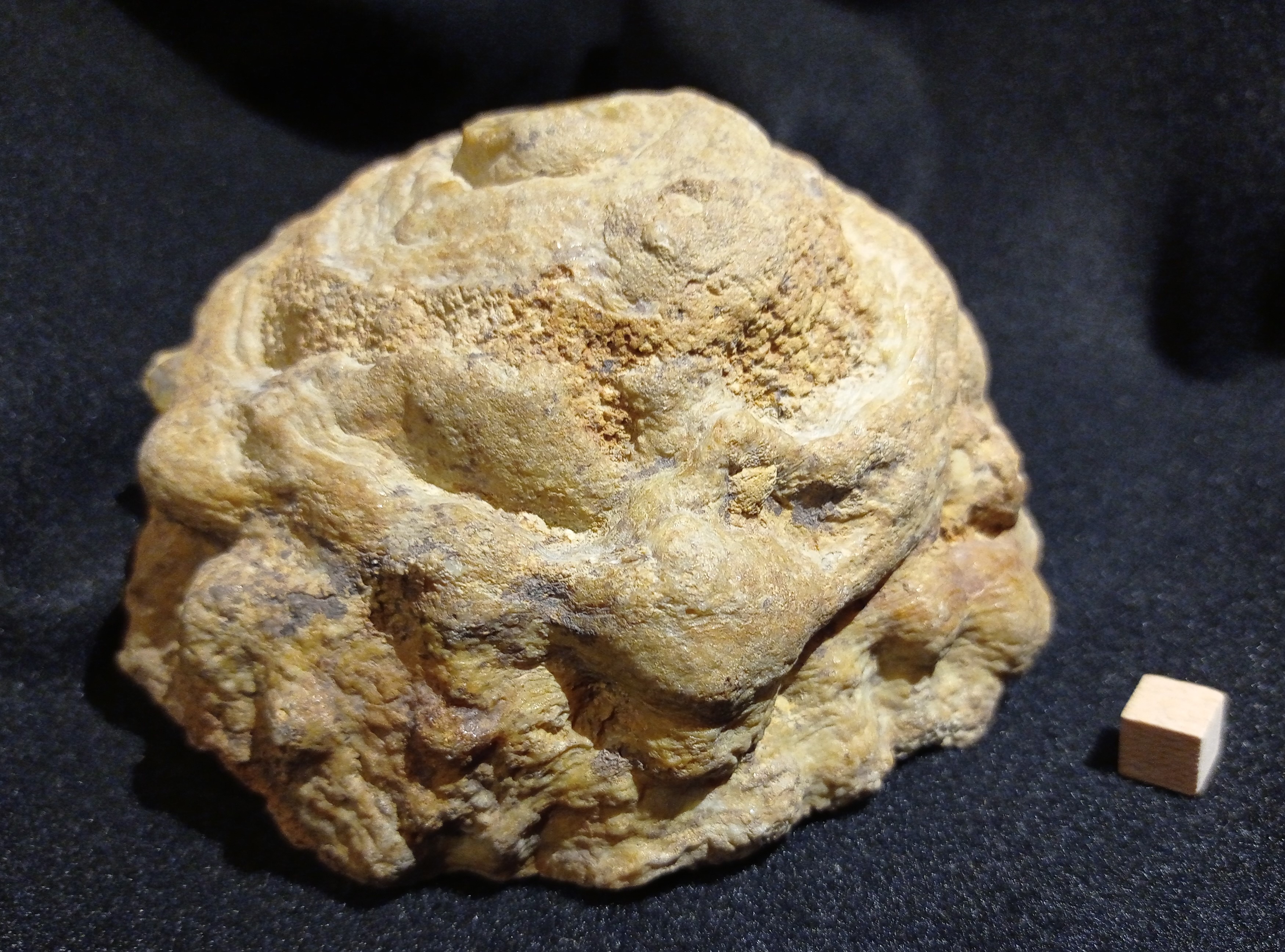 Aan een aantal berkenbomen, die soms moeite hebben met de vochtige omstandigheden hier, groeien elfenbankjes. En als je die ziet, kun je je voorstellen dat fossiele sponzen vroeger weleens als versteende paddenstoelen werden gezien. Het lijken net omgekeerde aulocopiums