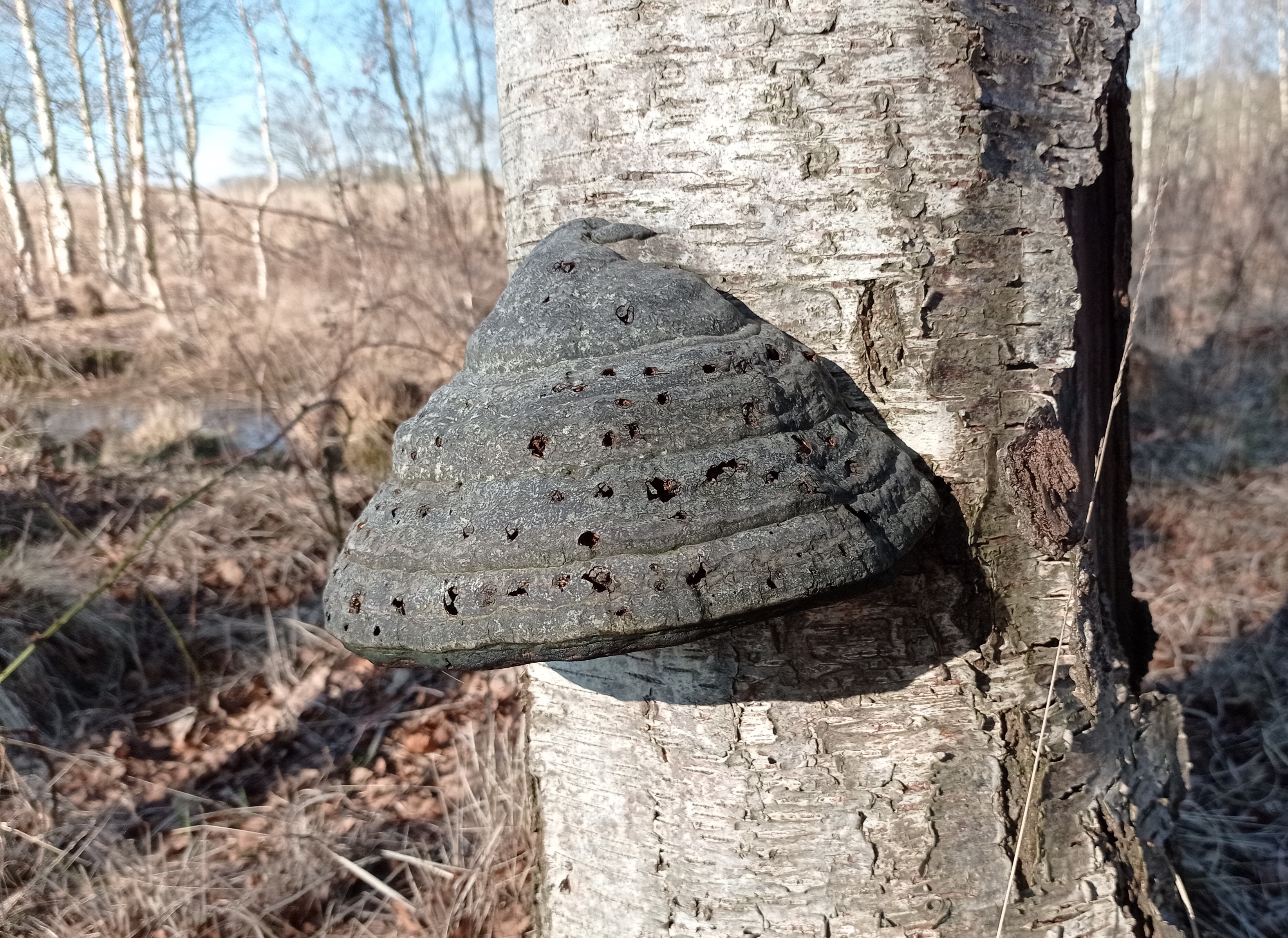 ). De paddestoel op de foto is de gewone tonderzwam. Vroeger werd er tondel in bewaard, vandaar de naam. De gaatjes zijn gemaakt door insecten die er in leven.ik heb toen vrienden wat hout in t vuur gooiden nog een paar van deze zwammen er af kunnen halen. Ze liggen nu bij me op mijn kamer en blijven nog mooi in vorm.