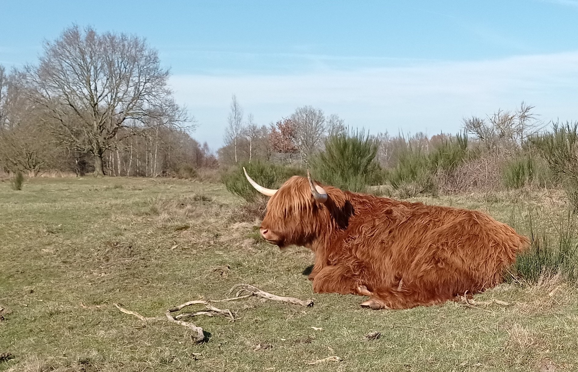 Gisteren erg genoten van een vrije dag, het mooie weer en een wandeling rond Het Zwarte Gat, een vermeende pingoruïne bij Zuidwolde (Dr.). Daar liepen een aantal Schotse Hooglanders en beide samen brachten je even in gedachten terug naar de IJstijd (of was het door de snijdend koude NO-wind?).