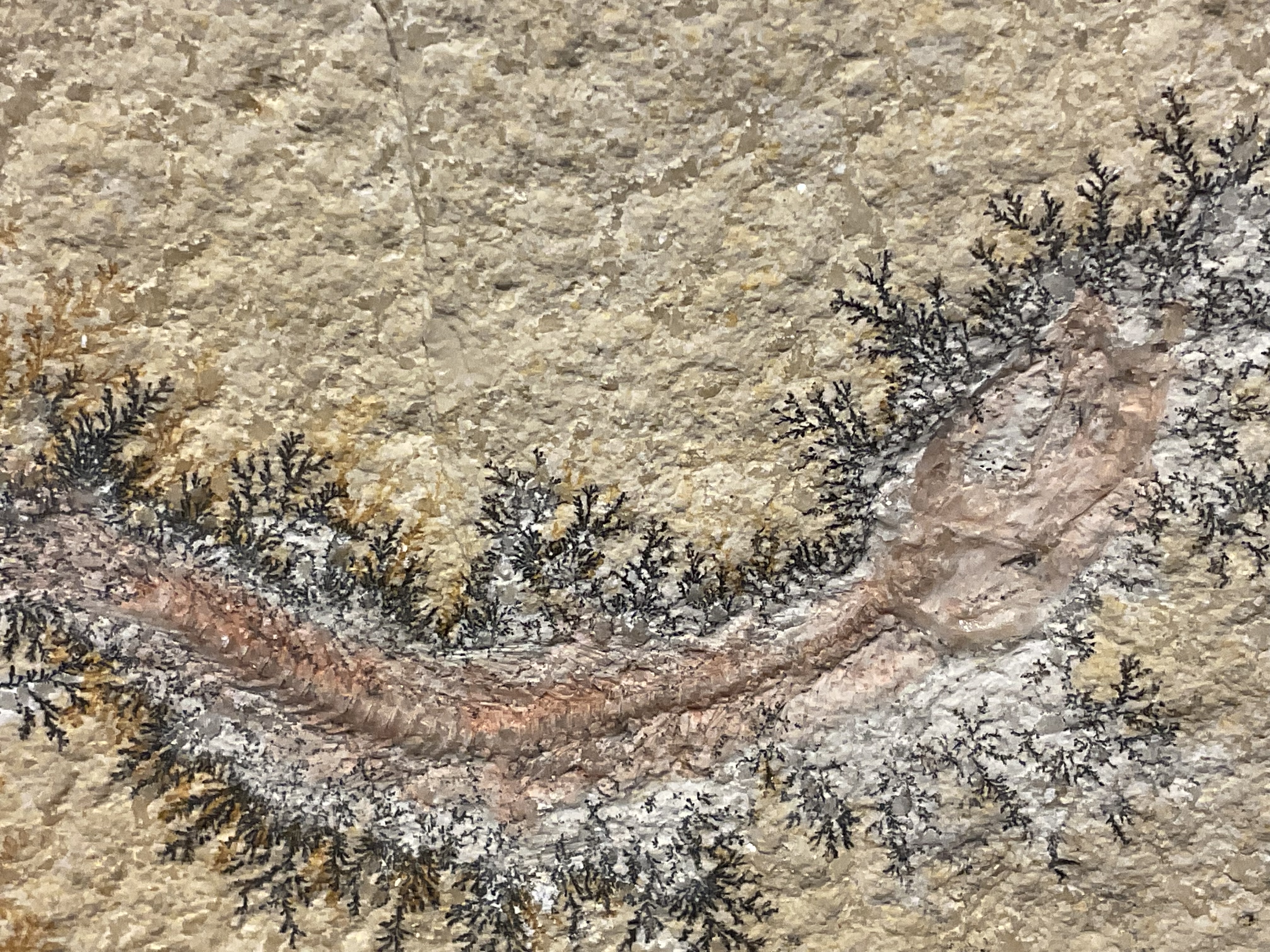 Leptolepis sprattiformis, worden algemeen aan 'Solnhofen' toegeschreven, maar gezien de bewaring komt deze waarschijnlijk uit regio Eichstätt. Late Jura.
