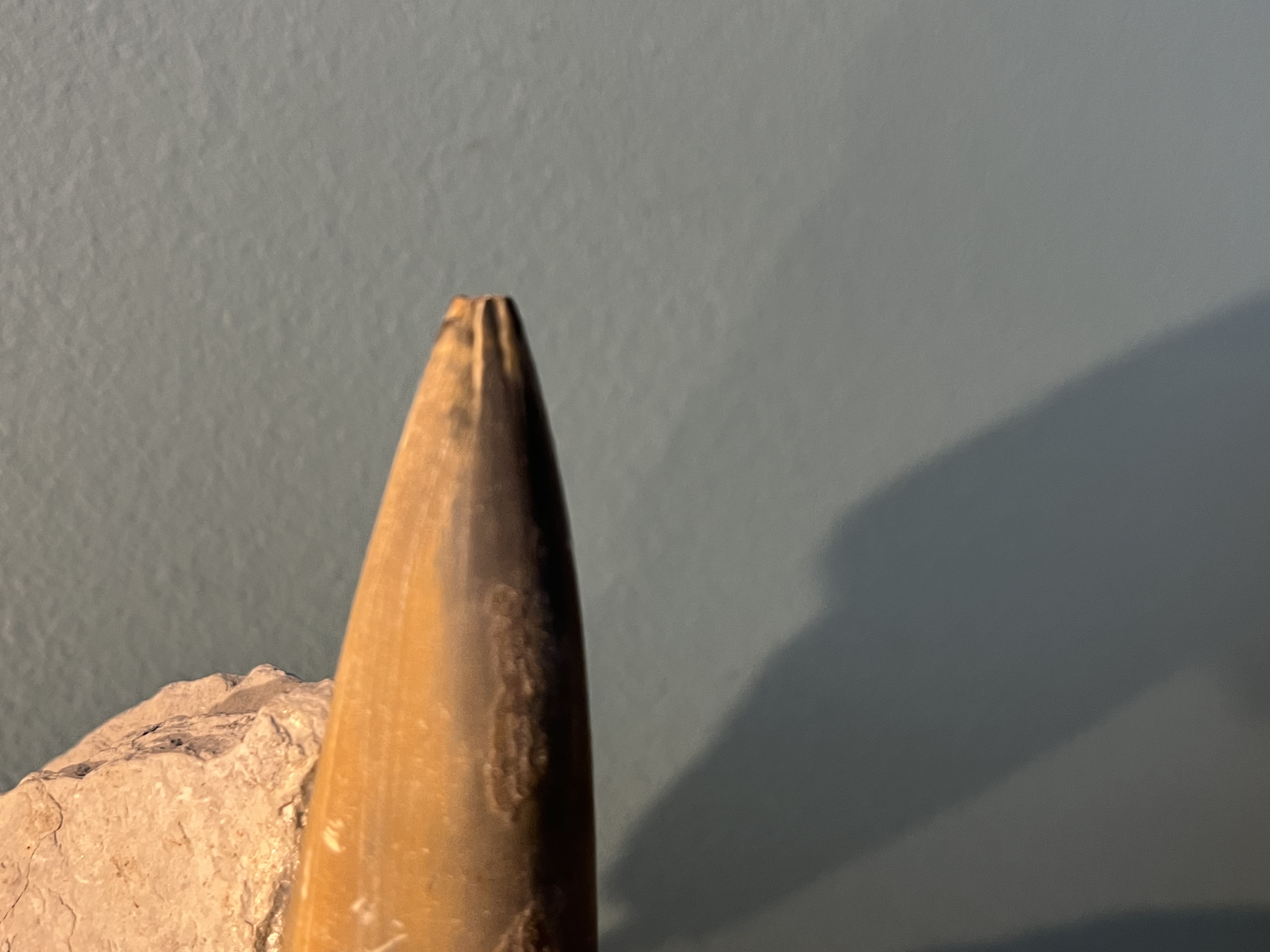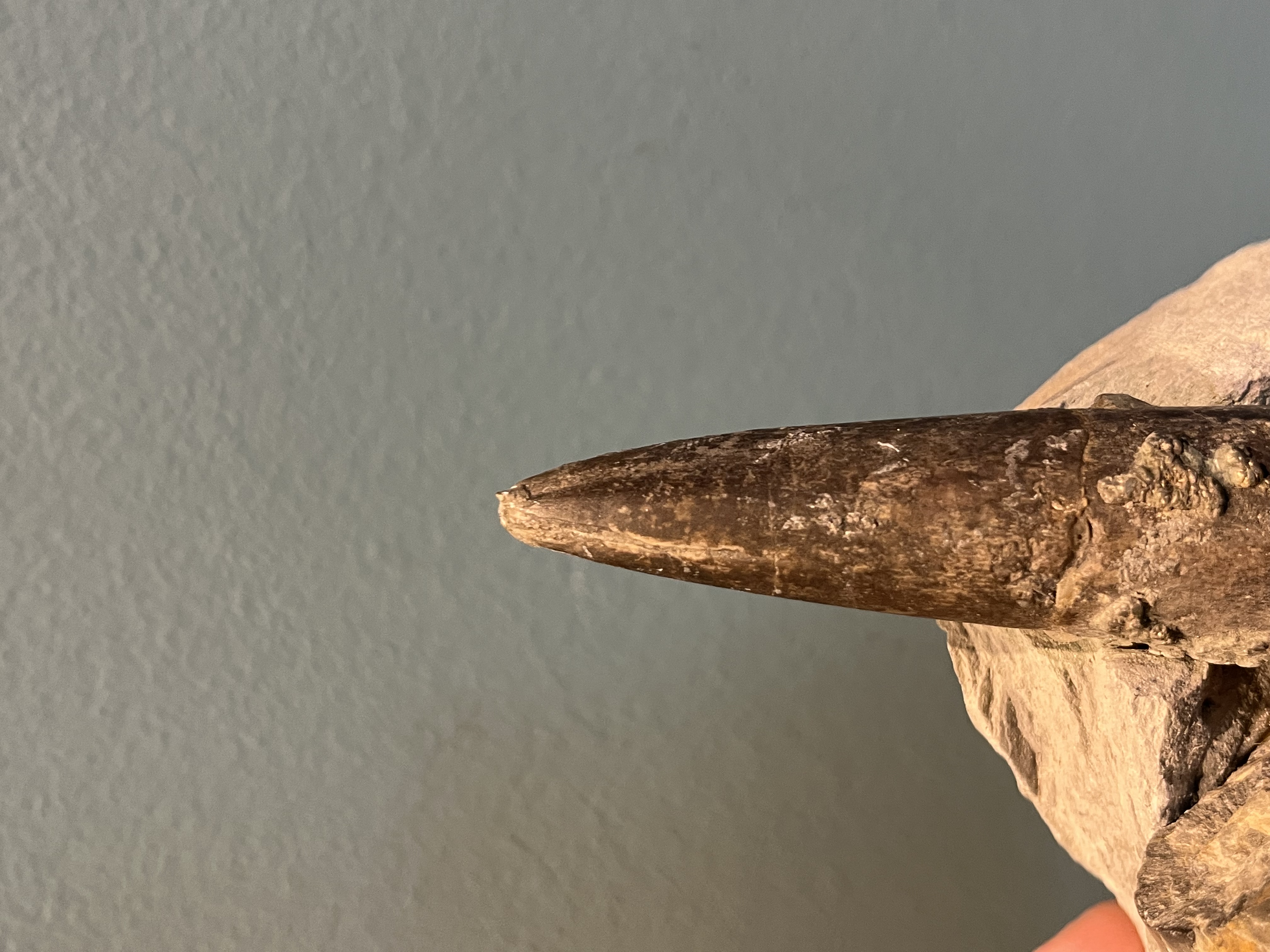 Zit er toevallig een groef op de punt van deze belemniet? Als dat zo is, dan is zelfs een determinatie mogelijk.