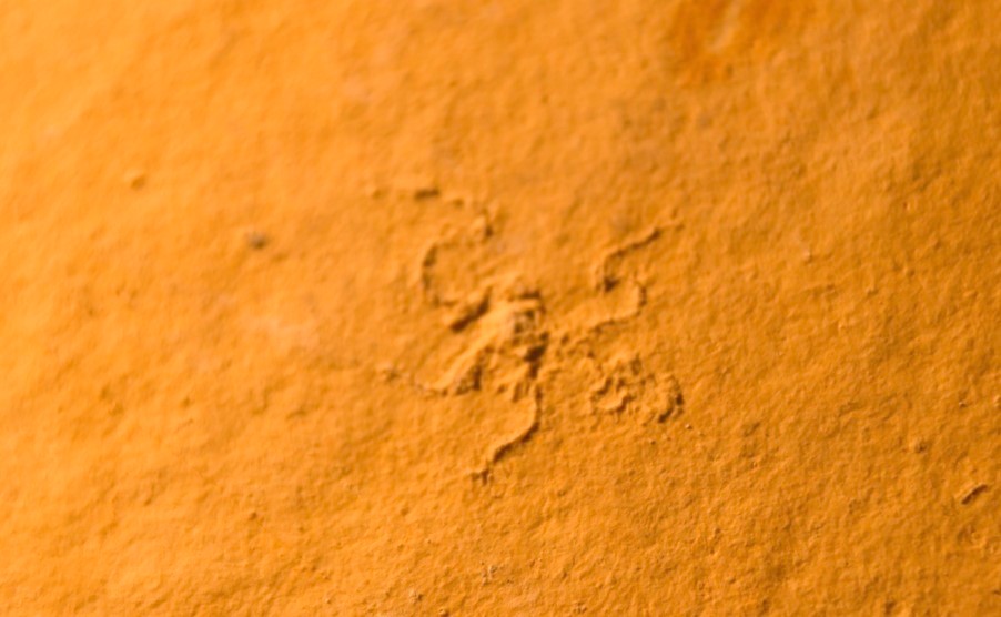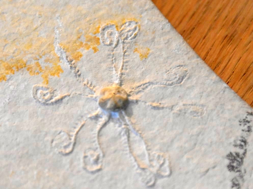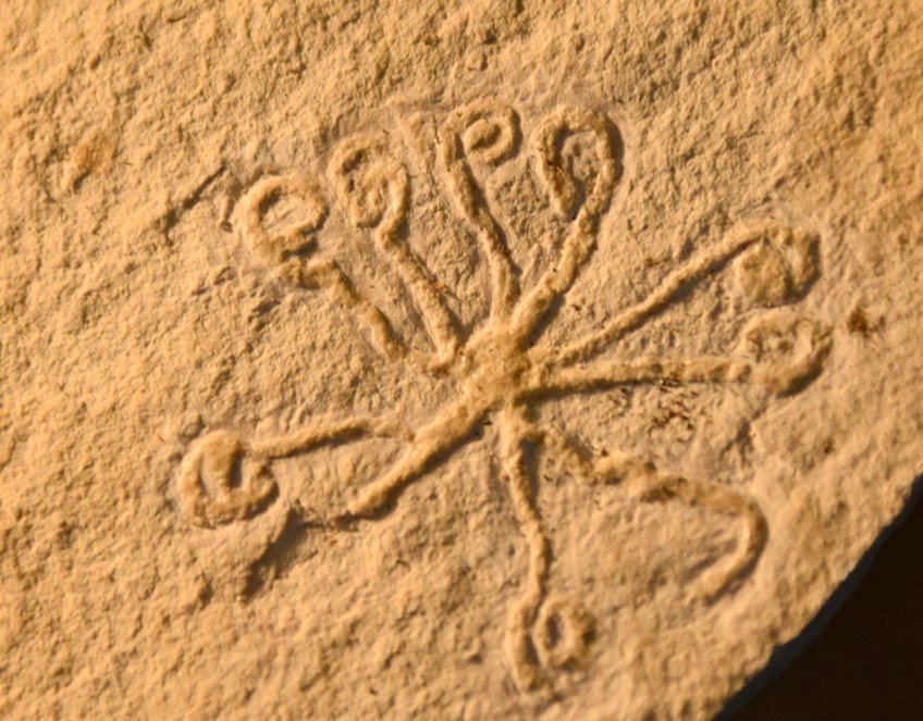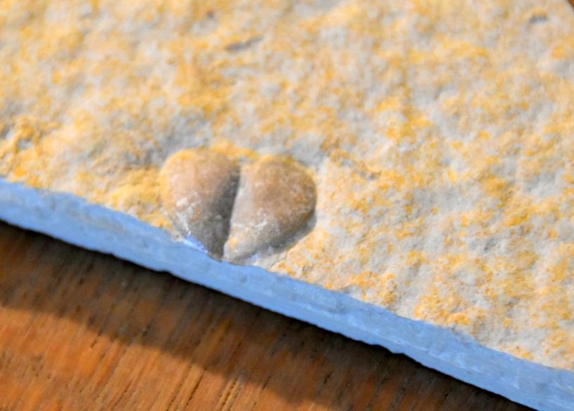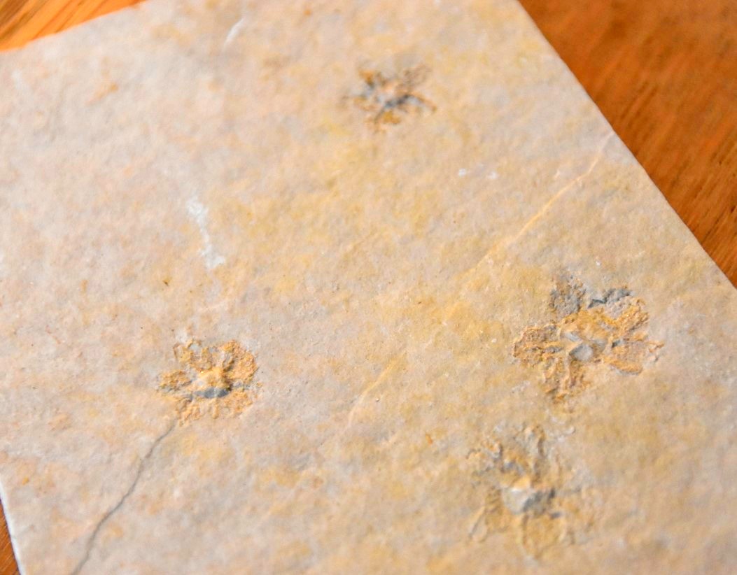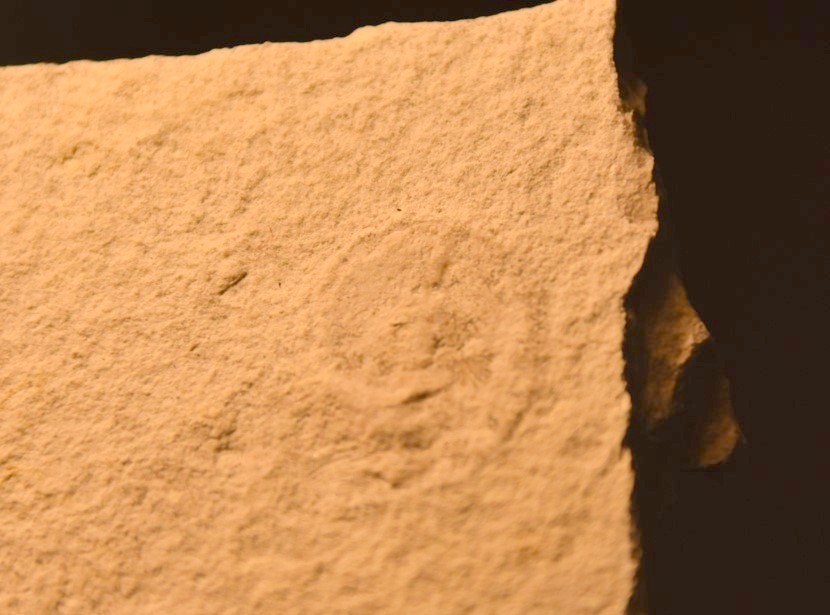 Graag vestig ik de aandacht dat er 9 duidelijke vis-fossielen onder zijn, waarvan 1 met origineel en afdruk, en 'mooi' afgezet met mangaan dendrieten.