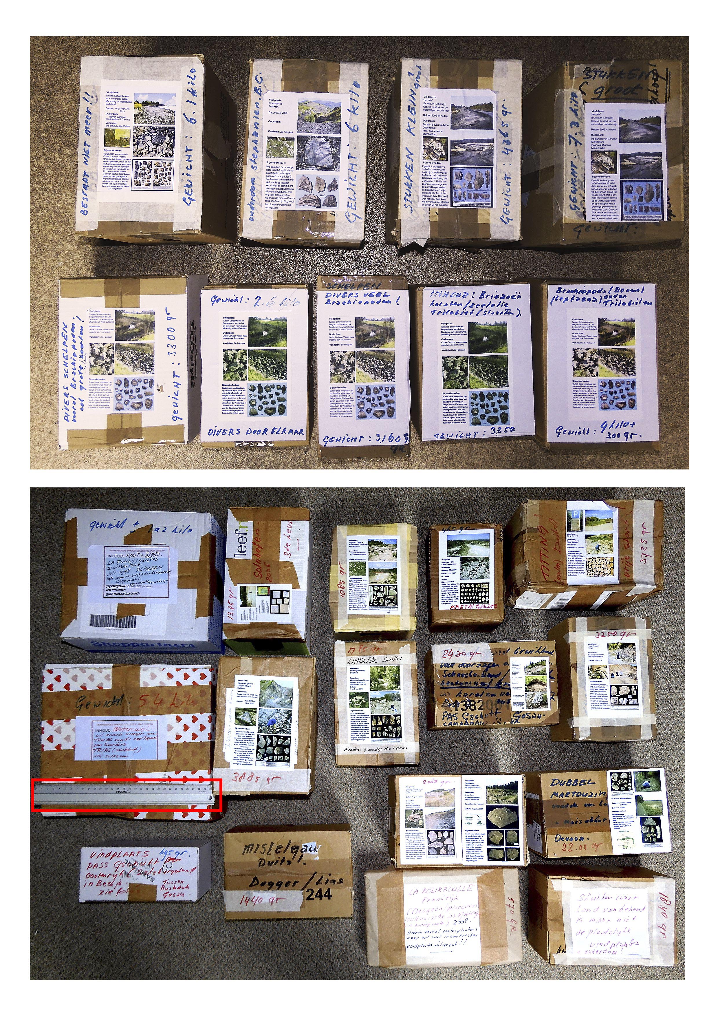 Foto's geven het aantal dozen aan met de vindplaatsen de jaartallen en de ouderdom evt. digitaal bijgeleverd