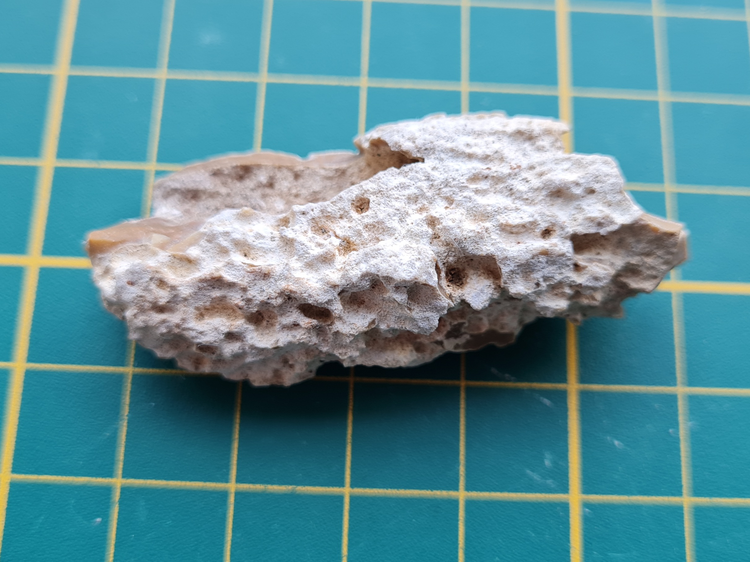 dit is een stuk vuursteen met kalkresten, afkomstig uit het Krijt.