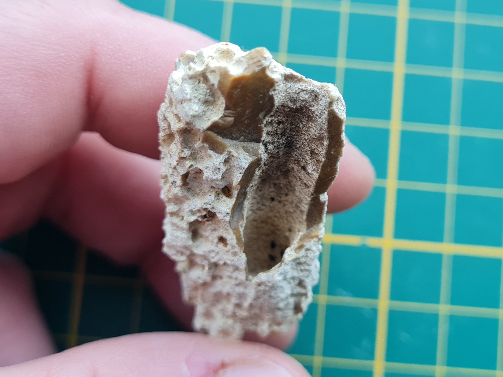 Wie kan mij vertellen wat dit precies is? Gevonden in de Cottesserbeek vlakbij Grenspaal 7. De beek loopt vanaf de Formatie van Vaals, maar ook door Carbonische lagen.