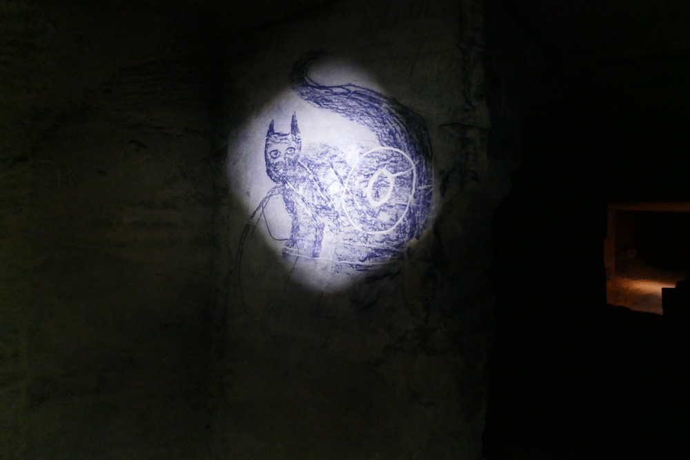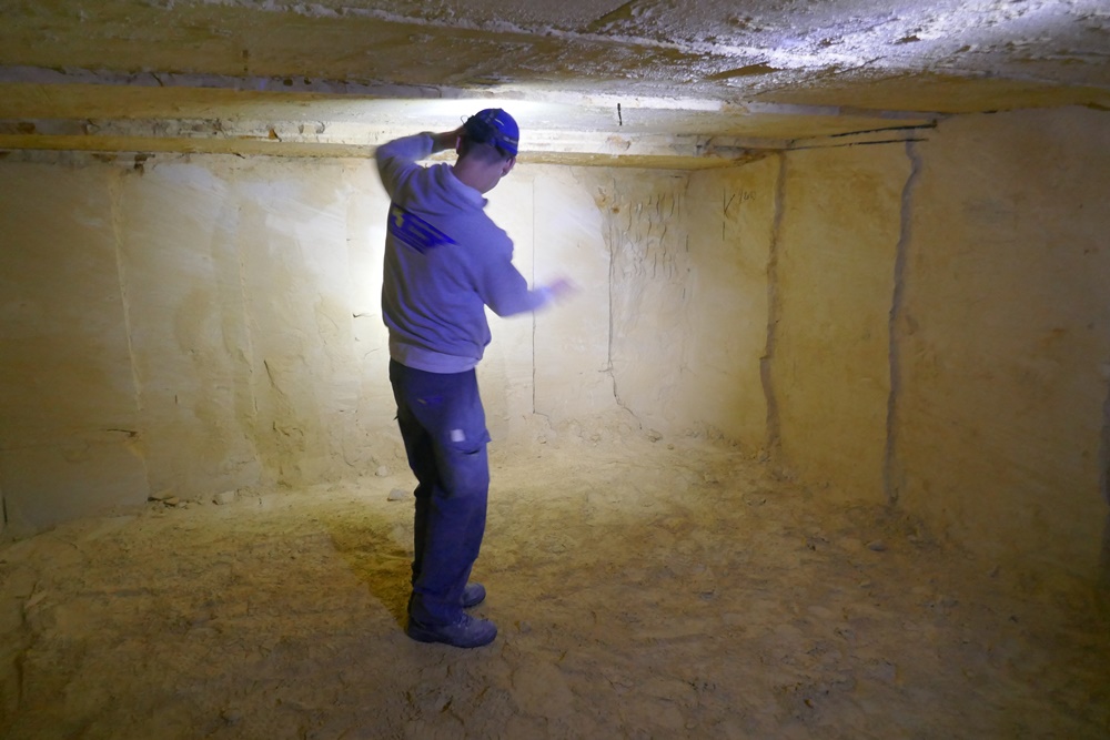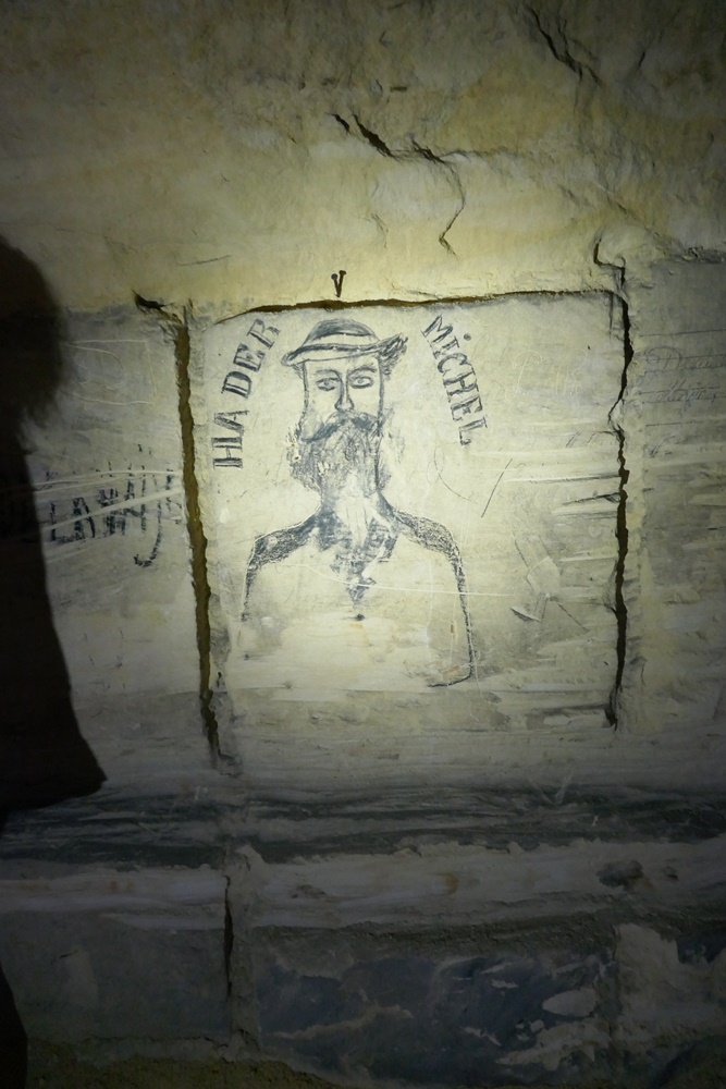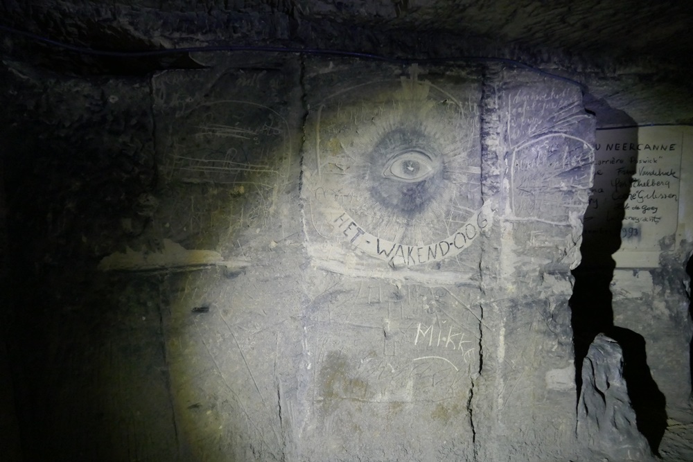 Het is een mijn die al lang in gebruik is, wanden van de gangen zitten vol met tekeningen en teksten.